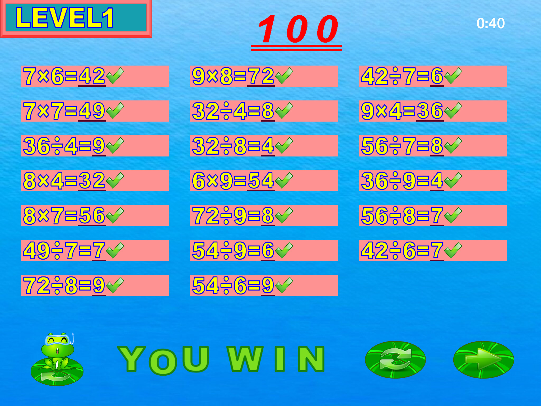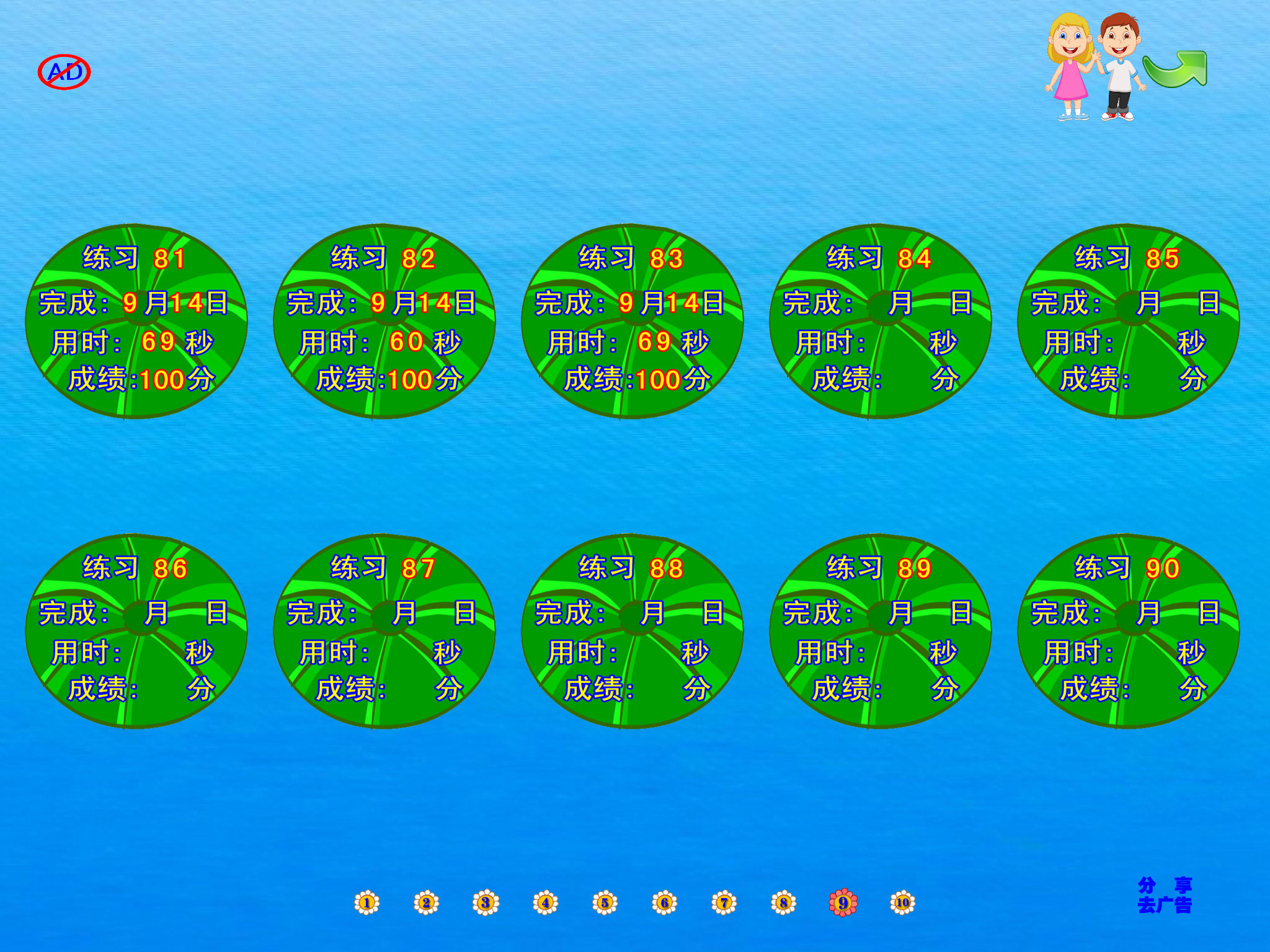 - 能自动判断对错及记录做练习的时间和分数