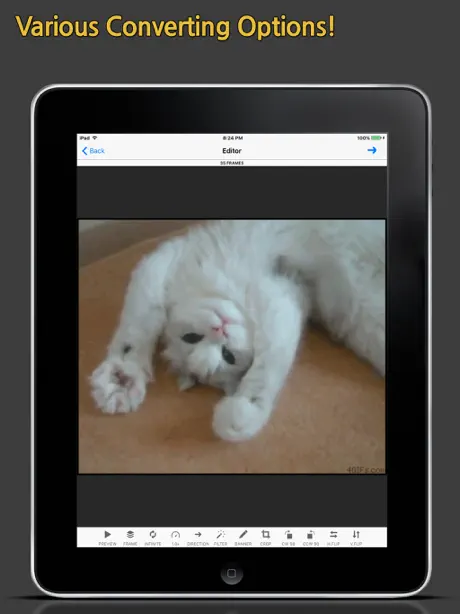 現状、iOSでAPNGを作成するアプリはこれ一択だが、使い勝手は非常に良いので問題ない 後はデフォルト画像を第1フレームとして使用せず、アニメーションに含めない(IDATの前にfcTLを付けない)タイプのアニメも作れれば尚良いと思う