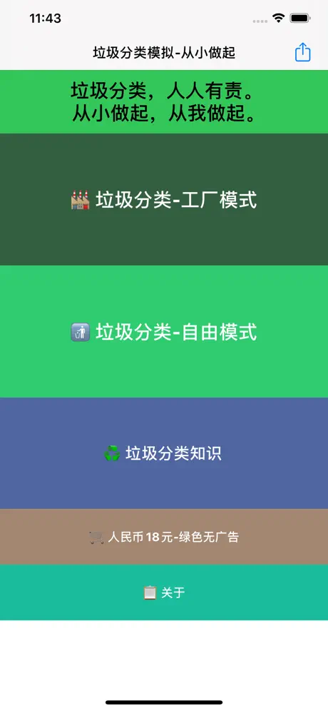 垃圾分类模拟-从小培养 has several in-app purchases/subscriptions, the average in-app price is ¥22.00.