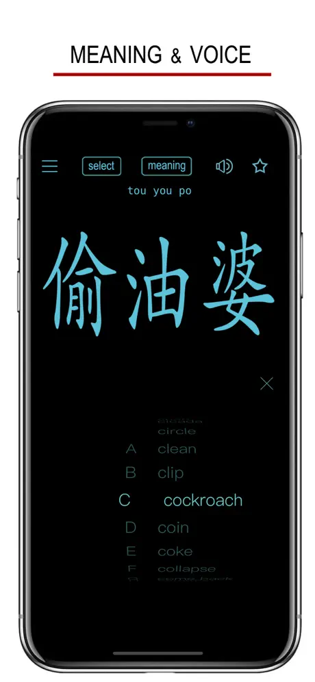 You can select the word in alphabetical order (English meanings) by clicking “select” in the menu bar. Basic everyday Sichuanese words!