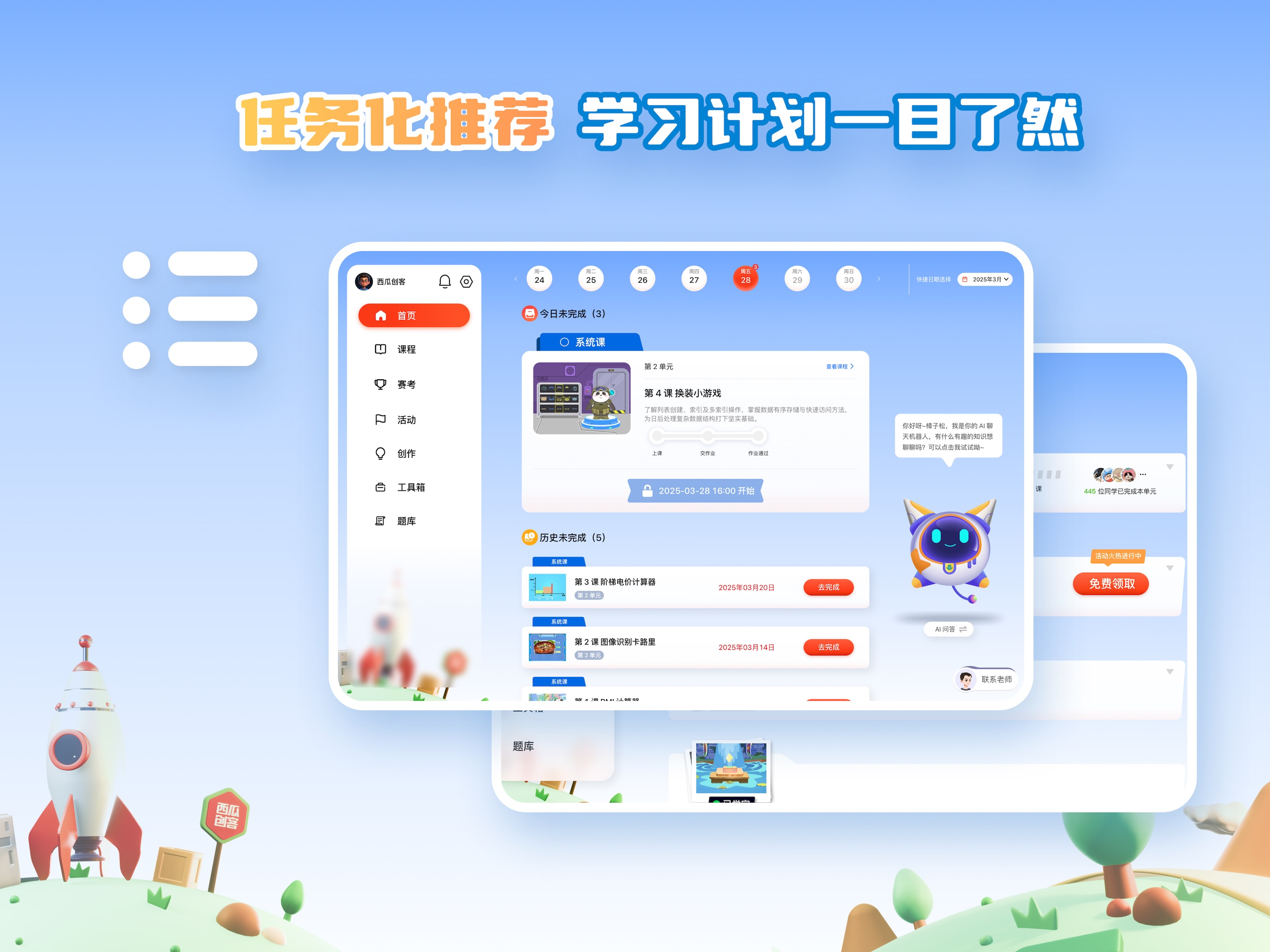 有免费的体验课程,孩子学习后很喜欢。让我意外的是几岁的小朋友通过学习,竟然用AI生成了图片和音乐,成就感满满的向家人展示成果。 语音导读功能也很棒,不需要家人陪同就可以自行跟着文字导读学习。都说兴趣是孩子最好的导师,学习了软件上的图形化编程课程,不仅让孩子多了一个兴趣爱好,还开阔了思维。孩子快乐的成长,做父母的也感到很开心