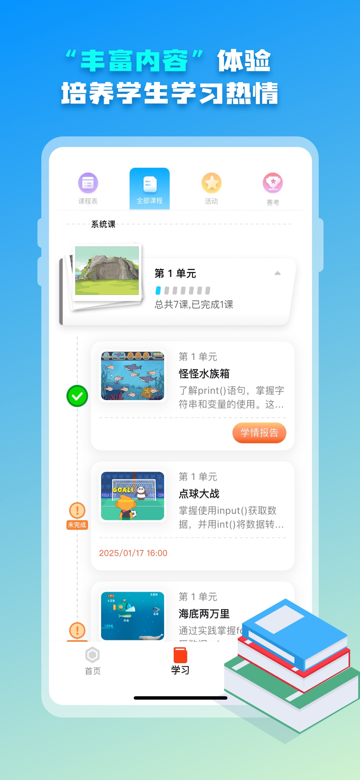 有免费的体验课程,孩子学习后很喜欢。让我意外的是几岁的小朋友通过学习,竟然用AI生成了图片和音乐,成就感满满的向家人展示成果。 语音导读功能也很棒,不需要家人陪同就可以自行跟着文字导读学习。都说兴趣是孩子最好的导师,学习了软件上的图形化编程课程,不仅让孩子多了一个兴趣爱好,还开阔了思维。孩子快乐的成长,做父母的也感到很开心