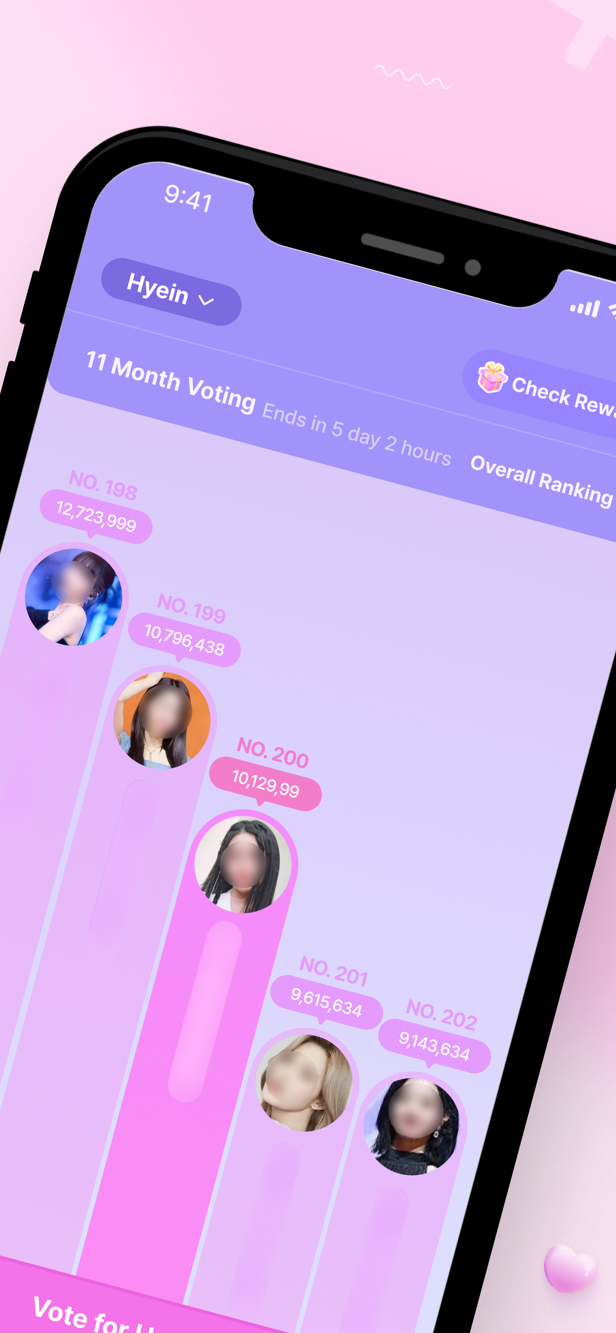 自分だけかもしれないけど月の初めになると勝手に投票されてしまいます、動画をみて3個ハートが貰えるはずが増えずに数が変わらないし、月の下旬になるとハートの個数が減ったり(この時は投票されてない)してしまいます🥲 TWICEのメンバーのフォロワーが300〜3000人ぐらいそれぞれいるんですけど、UNISの全体のフォロワーが7000人ぐらいいてメンバーそれぞれ1000人超えてます。UNIS人気だけど絶対TWICEのほうが人気だしそんなにフォロワーいないと思います。毎月UNISが上位を取ってるんですけど圧倒的な投票数すぎてそれ以外のアイドルがランキングに入りずらいです。 改善できたらしてほしいです😽
