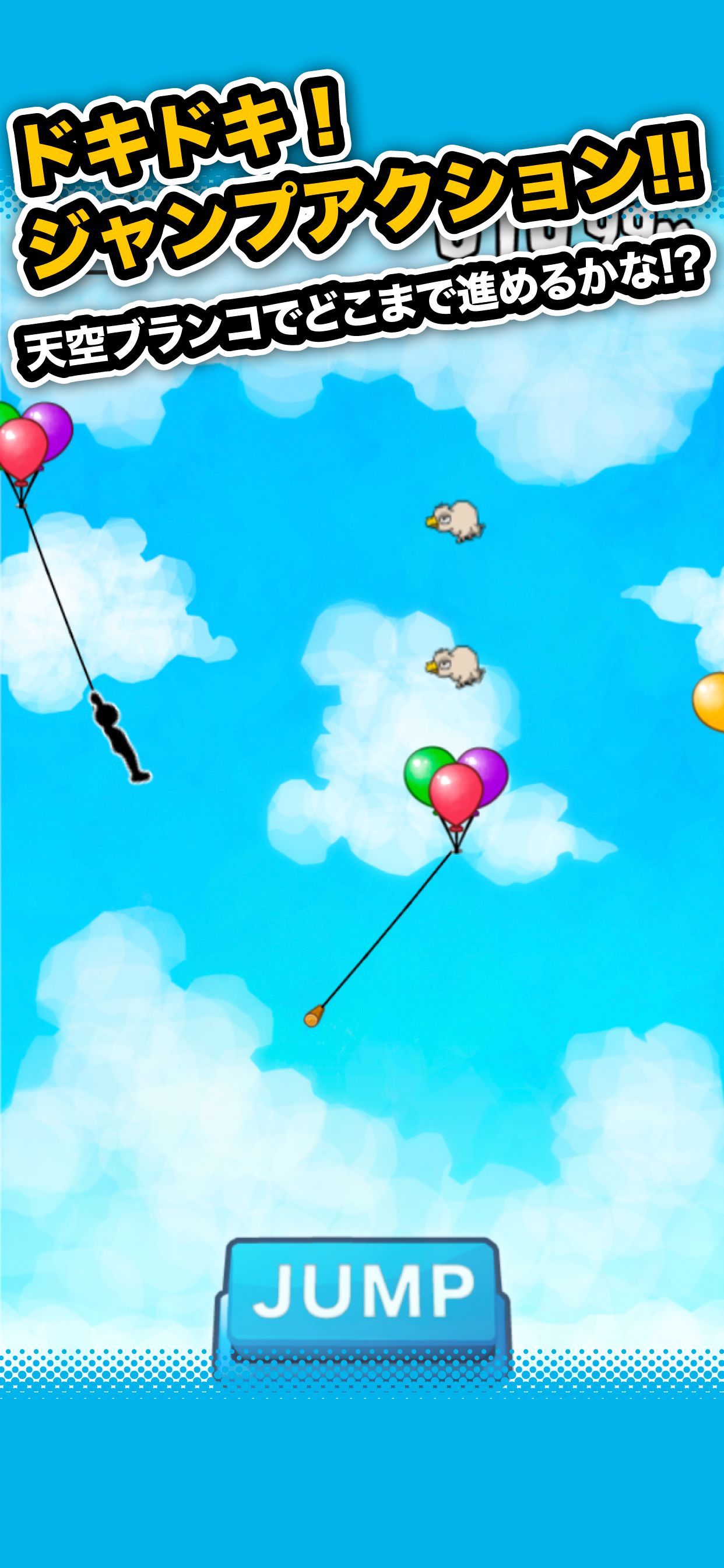 子どもの頃から運動音痴な私でも、スイスイと空の散歩が楽しめるこのゲームは本当に素晴らしく、プレーしていて身体が軽くなるような感覚すら覚えます(失敗した時を除いて💦💦💦)!! 始めてからまだ一週間足らずですが、既にやみつきです(⑉︎ꂧ͂◡︎ꂧ͂⑉︎)♡♡♡笑 ゲームが進んで行くに従ってJUMPボタンのタップ回数などが変化して行き、難易度も増すのでまさに手に汗にぎる状況になりますが、どこまでもどこまでもどこまでも空の旅を続けたくなってしまいます(*›◡︎‹*)!!! それなのに、500mあたりからあまり進めず、コンティニューで距離を伸ばそうとしても落下することが続出なので、只今その地点で悩んでいます( ˘•~•˘ )💧 でも、そのうちに何とかコツと風船を掴んで700m到達するぞ💪☹️‼️ これからも楽しく悩みながら曲がりなりに天空散歩を続けて行きたいです୧(ᕯ˙ᗨ˙ᕯ)୨🎶