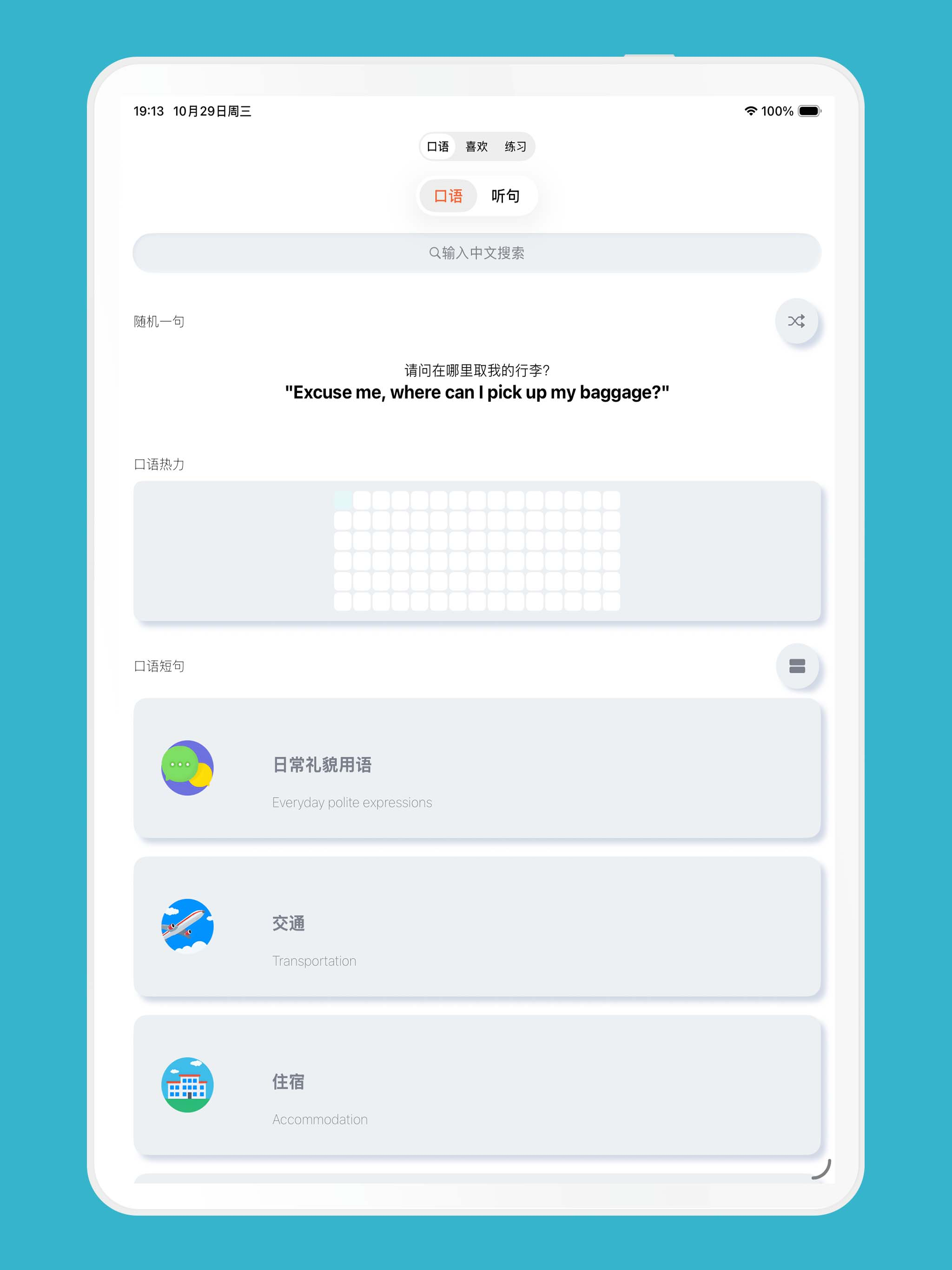 按钮按了后没有声音,所有句子都没有声音。 重启后有声音了,简洁好用,以后会不会增加更多场景?