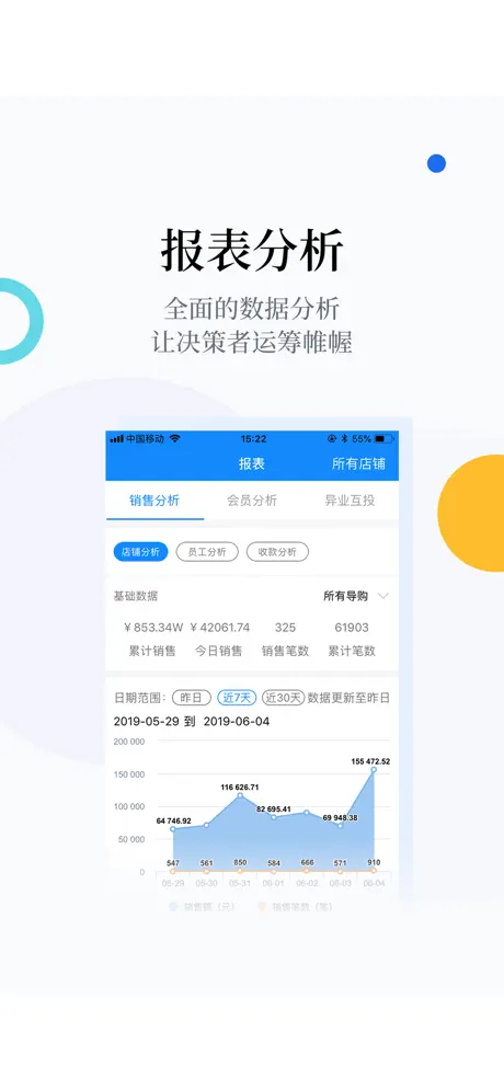 店铺生意宝的报表功能真的很强大,能进行店铺分析,会员分析,收款分析等,基本上和店铺生意有关的都帮我整理好了,十分贴心。