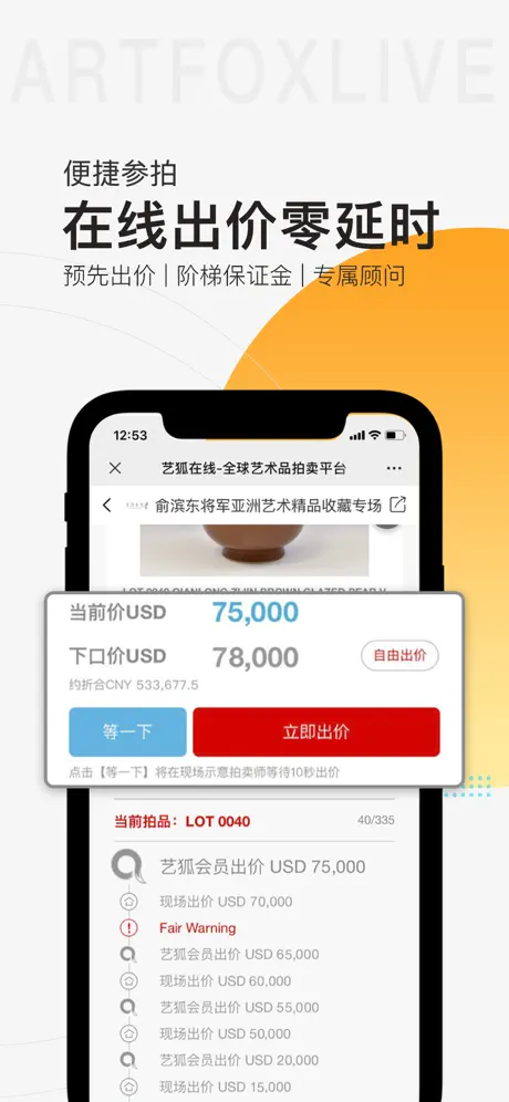 一直收藏艺术品、现在通过用艺狐app 提前浏览拍品,遇到喜欢的再加深细图省时省力。客户经理服务的超级好。好平台值得信赖!