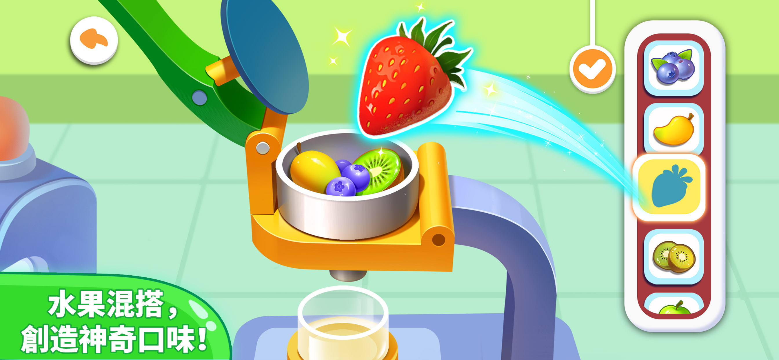 玩了这个宝宝巴士奇妙果汁店,我觉得这个游戏非常有动手能力,然后就是我们可以用这个技巧交给孩子爱护眼睛的方法,然后我建议在这个游戏里添加一些动画片,给孩子一点兴趣感。