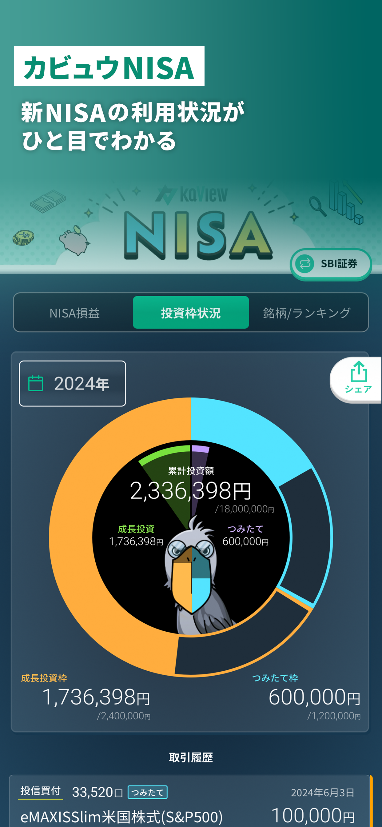 配当推移や個別株のポートフォリオがわかりやすく表示されすごく便利。 次のアップデートでは日本株のセクター割合が表示されるようになると個人的にはありがたい。 楽天証券のジュニアnisaの銘柄やsbi のidecoの対応もお願いします。