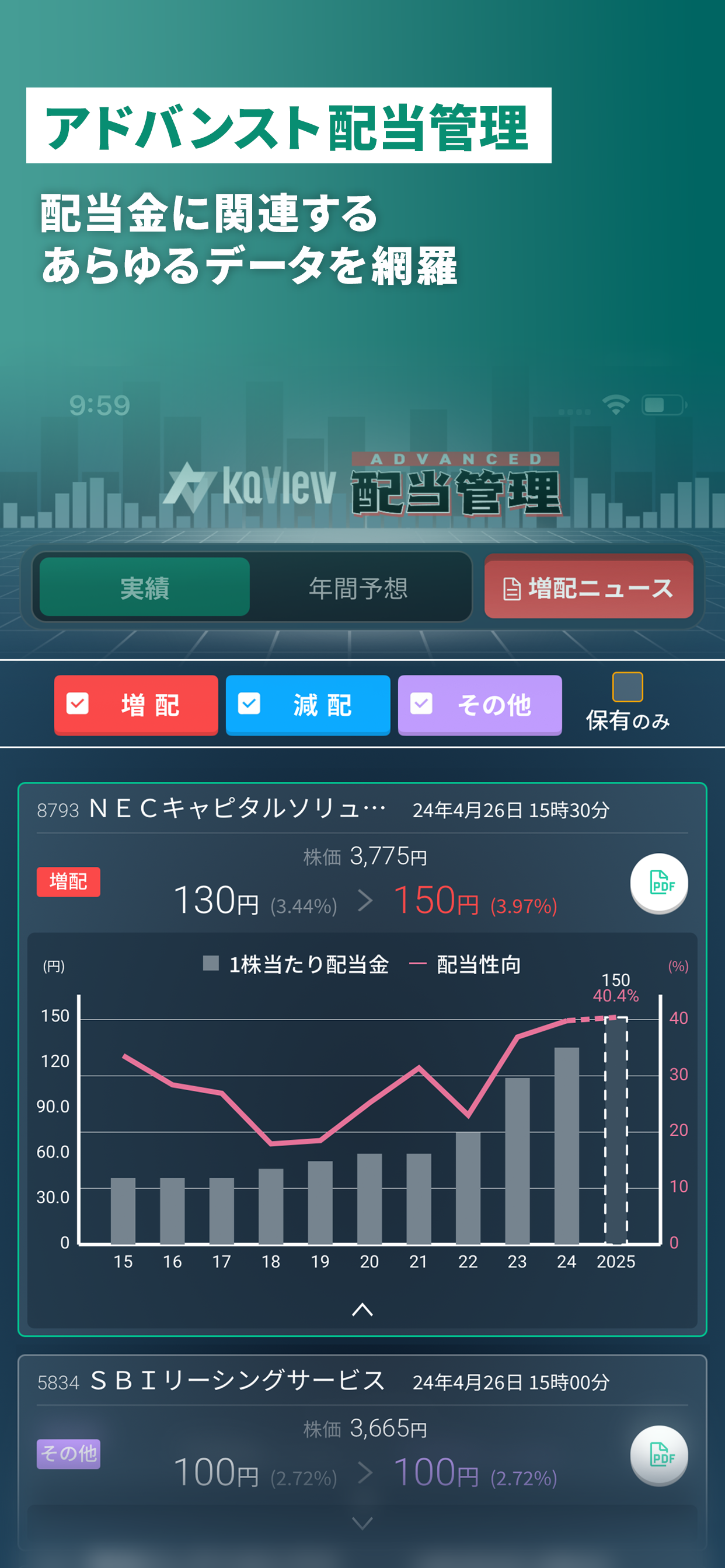バージョンアップしてから配当金の管理もできるようになり、使いやすさが増して気に入っています。 ただ、証券口座を10個まで登録出来ることに魅力を感じて課金しているのですが、対応している証券会社が少ない印象があります。 対応していても日本株のみで米国株や投資信託には非対応な事も多いです。 今現在、日本株・米国株・投資信託を全て集計できるのはSBI証券、楽天証券、マネックス証券くらいかと…。 各証券会社の認証方法の違いや制度の違いがあるため、難しい点が多々あるかと思います。 個人的には大和コネクト証券に対応してもらえたら嬉しいです。 他のアプリにはない機能が多く、毎日楽しみながら拝見させていただいています。 これからも応援しています。