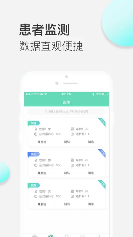 韦睿腹透医生端APP是昆山韦睿医疗科技有限公司出品的一款专业为肾友提供腹膜透析服务的智能慢性肾病健康管理云平台用户端APP。