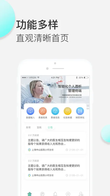 1、提供智能化的体征记录、腹透录入、化验录入功能。