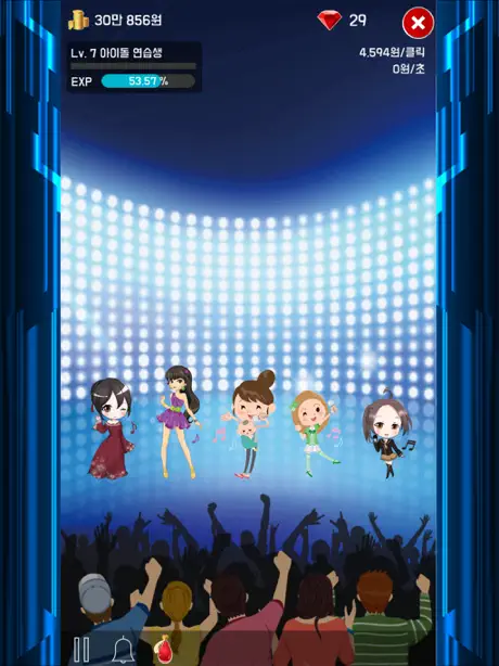 아이돌과 함께 공연을 뛰며 돈을 모아주세요.