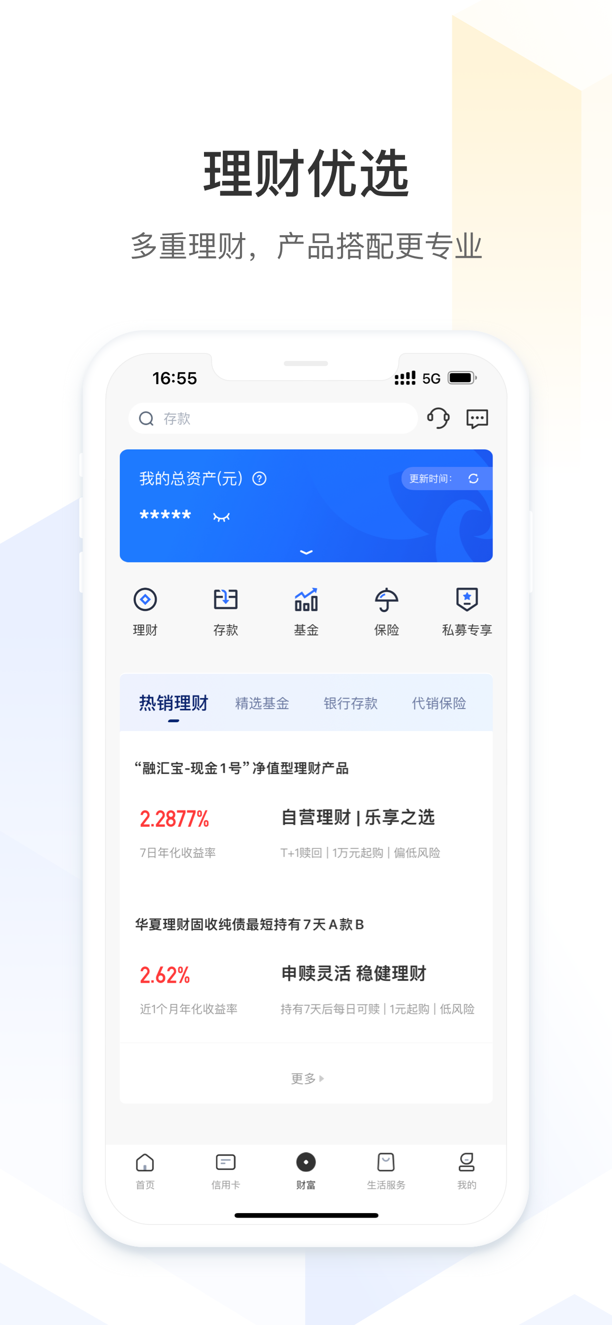 - 投资理财:汇集存款、理财、贵金属、特色产品等理财产品,支持不同维度的产品筛选、产品收藏等。