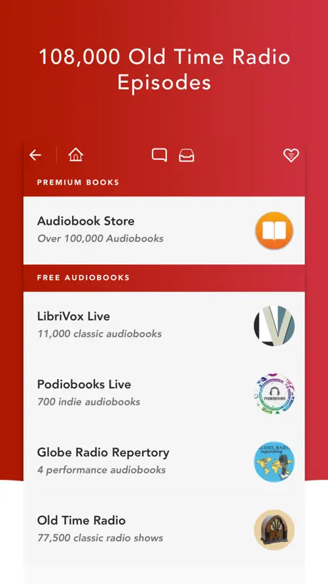 This is my favorite Audiobooks app. All global Radio episodes from BBC are fantastic and FREE. Unbelievably great productions. Very happy :))