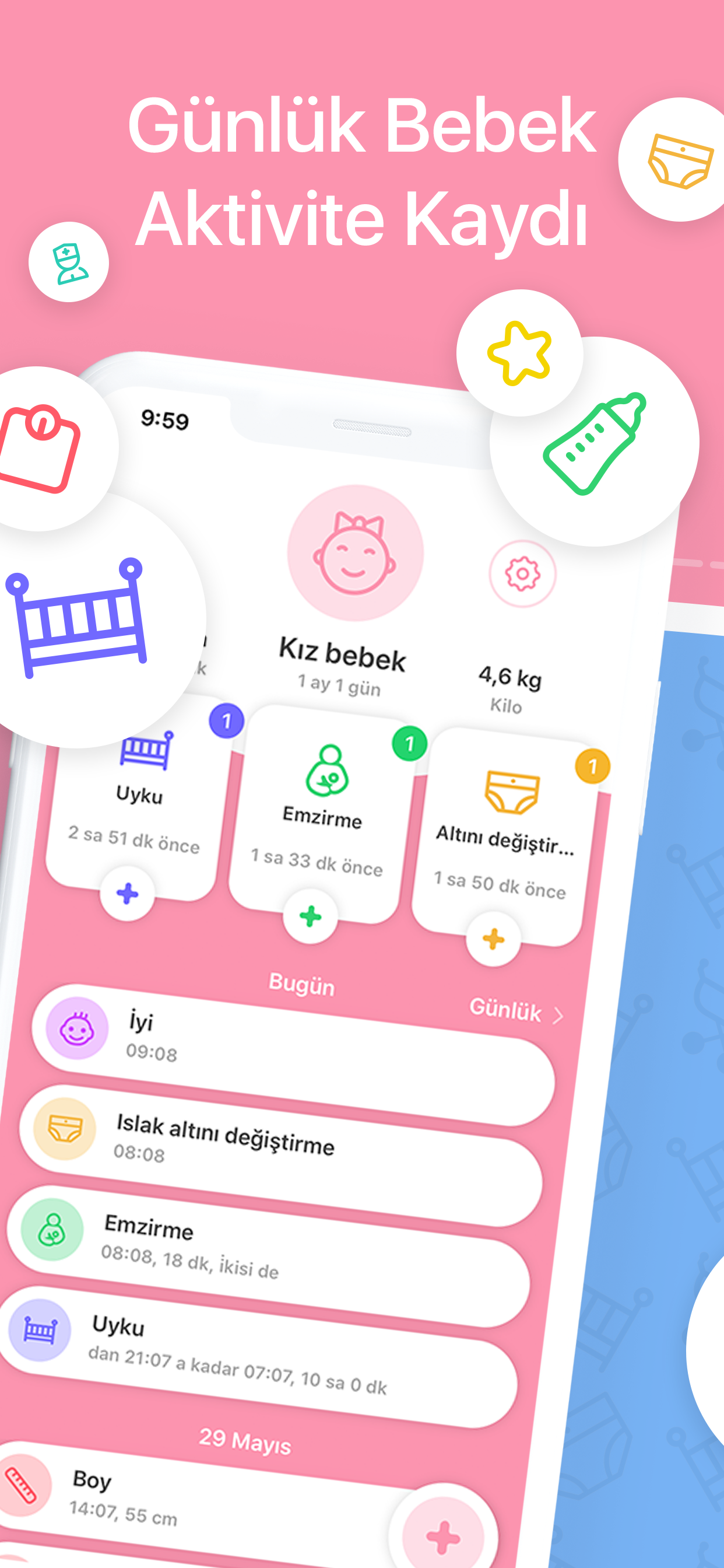 Bebeğim olduğunda elim ayağım oldu. Mutlaka indirilmesi gereken bir uygulama. Yenidoğan döneminde emzirmeleri, sonrasında uyku ve tuvalet düzenini, hasta olduğunda ilaçlarını, aylık gelişimini hep buradan takip ettim. 10/10 uygulama. Kullanımı kolay, reklamsız, ücretsiz… daha ne olsun.