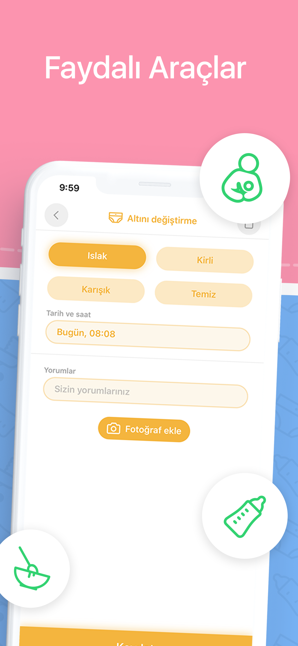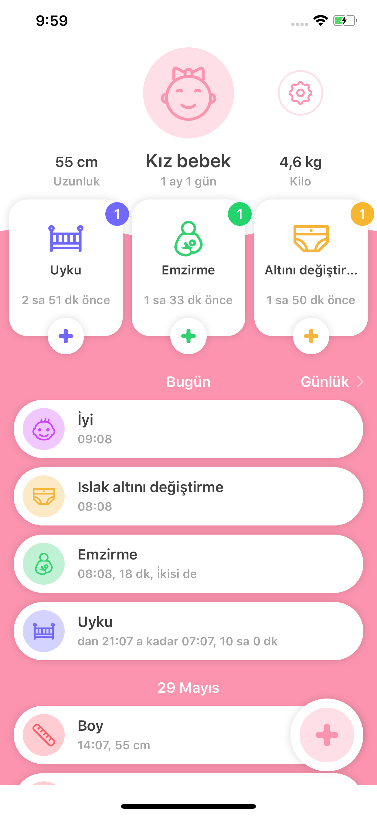 Uygulama yeni doğan bakımını çok kolaylaştırdı. öneri olarak günlük kaç adet bez ve emzirme yaptığımızı geçmişe dönük olarak da tek tek saymak yerine o günün yanına bilgi olarak yazılmasını eklemenizi isterim
