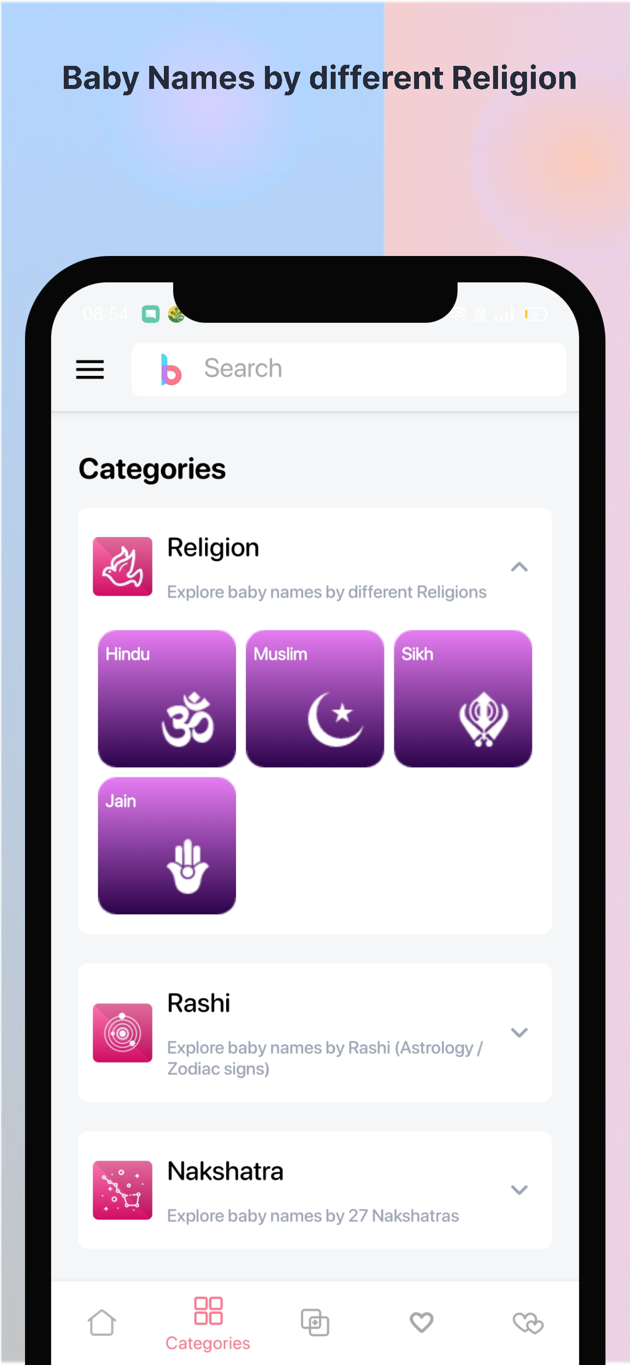 The app also provides baby boy names and baby girl names by Rashi (Zodiac Sign), Nakshatra, Numerology & Astrology.
