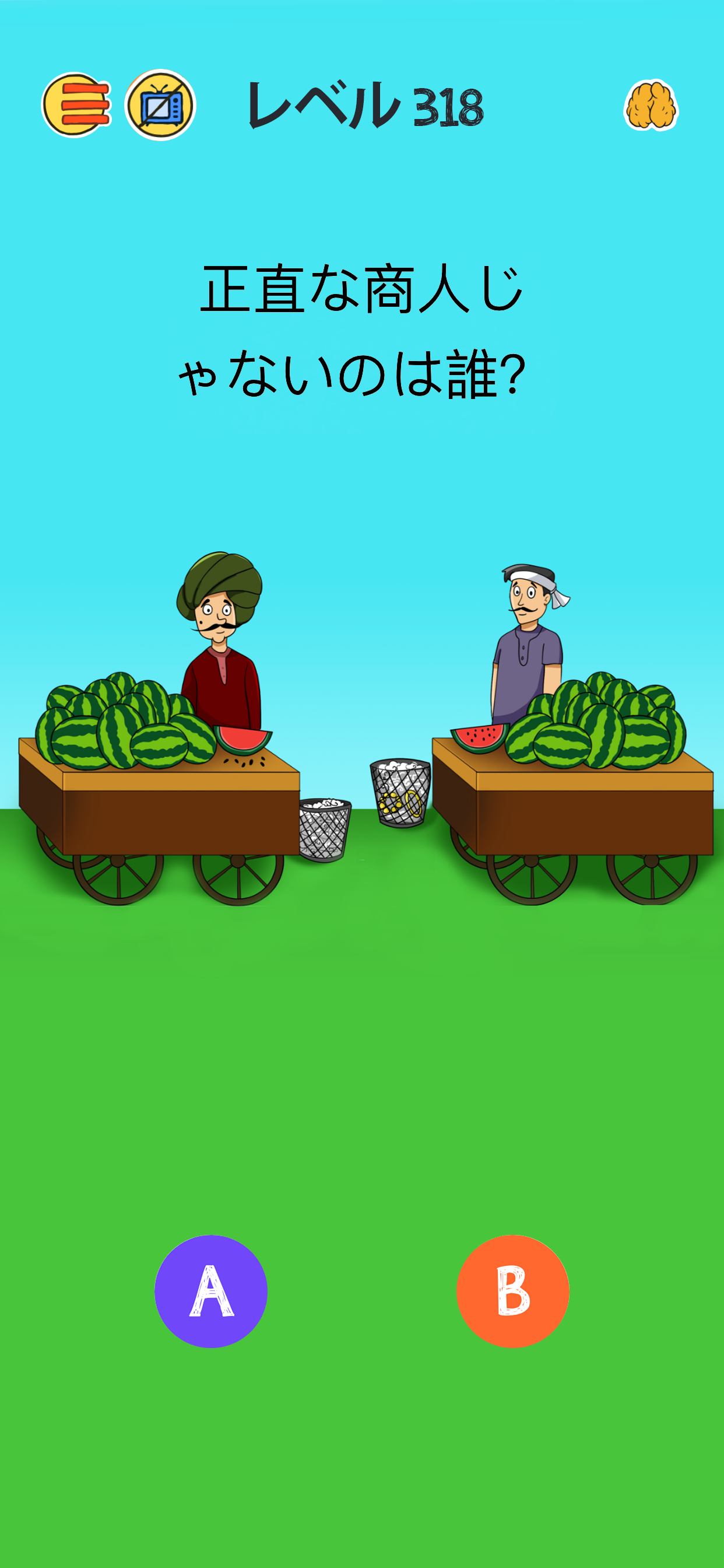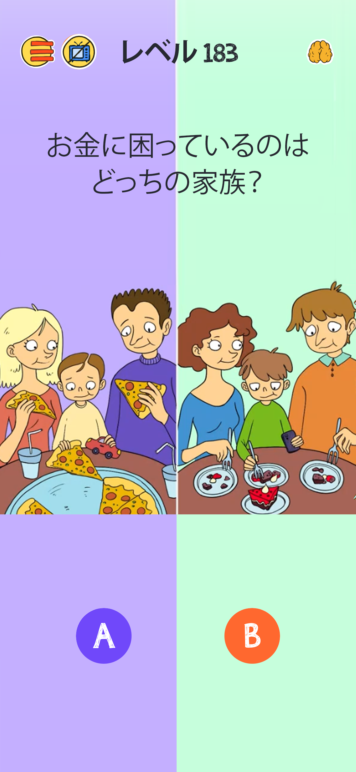 広告の多いゲームには慣れていましたがこれは多すぎる。ゲーム再起動もいいやり方ですがたまに同じステージやらされる時があるので効率は悪い。あとは反応も鈍いしヒント広告見てからじゃないとそもそも画面のどこ触っても反応しないステージもある。最初に年齢や暗記力や集中力などの何を意識してるか、性別を入力してからステージ始まるのですがこれも謎だし問題文も回答も謎。適当にやってクリアしても何故クリアなのか説明もないのでモヤッとしたのでアンストしました