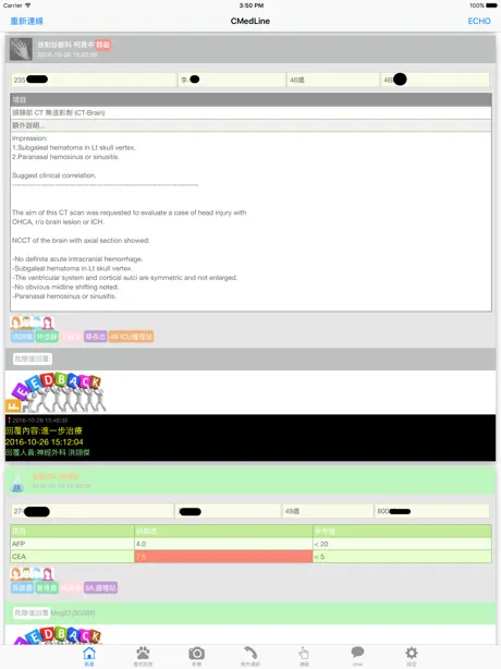 3. 危險值回覆機制:醫療團隊接收的危險值處理後,能在行動裝置直接進行處置回覆,處置後的訊息會回傳系統,醫療照護團隊可以清楚獲知病人已接受處置。