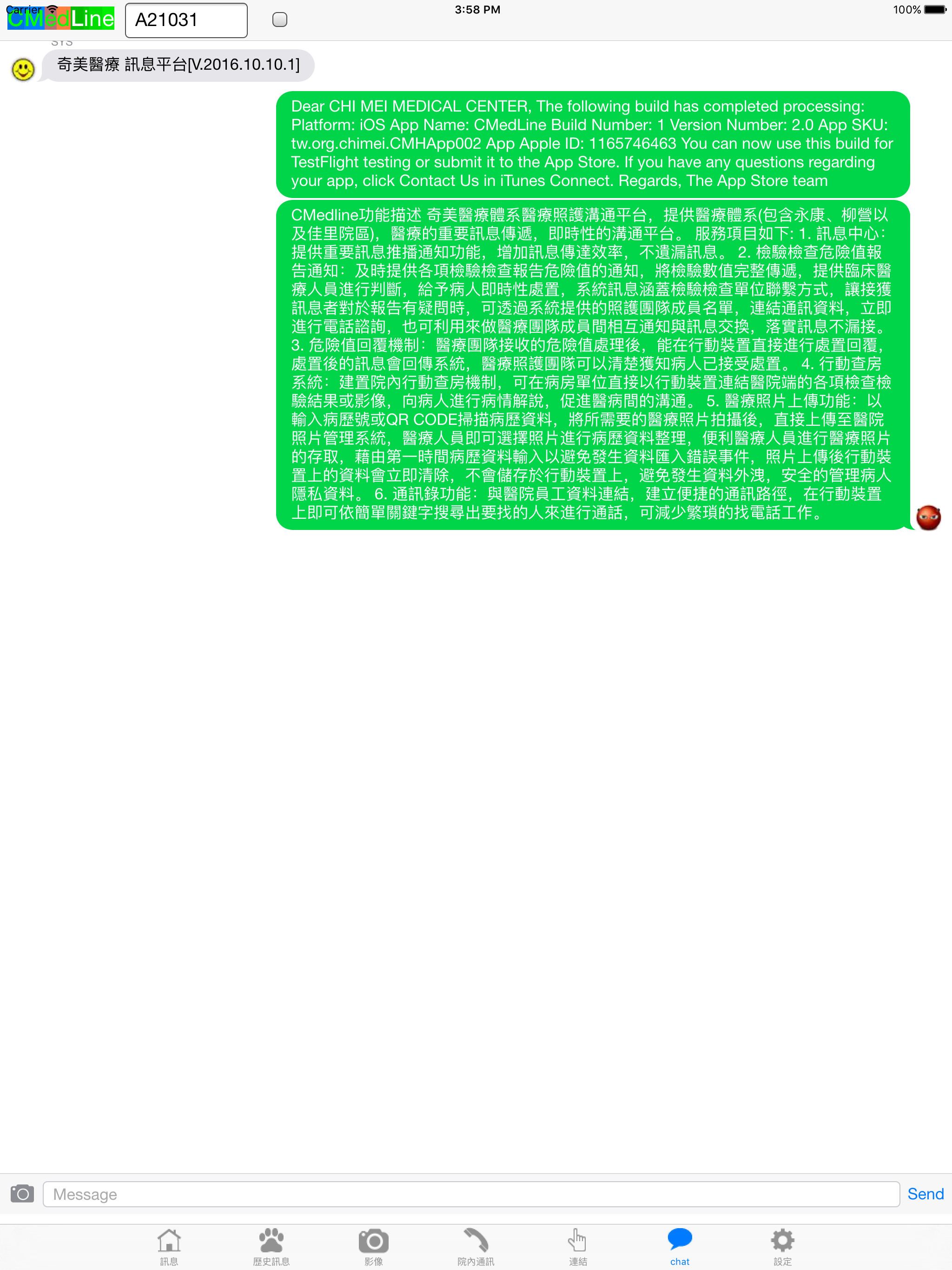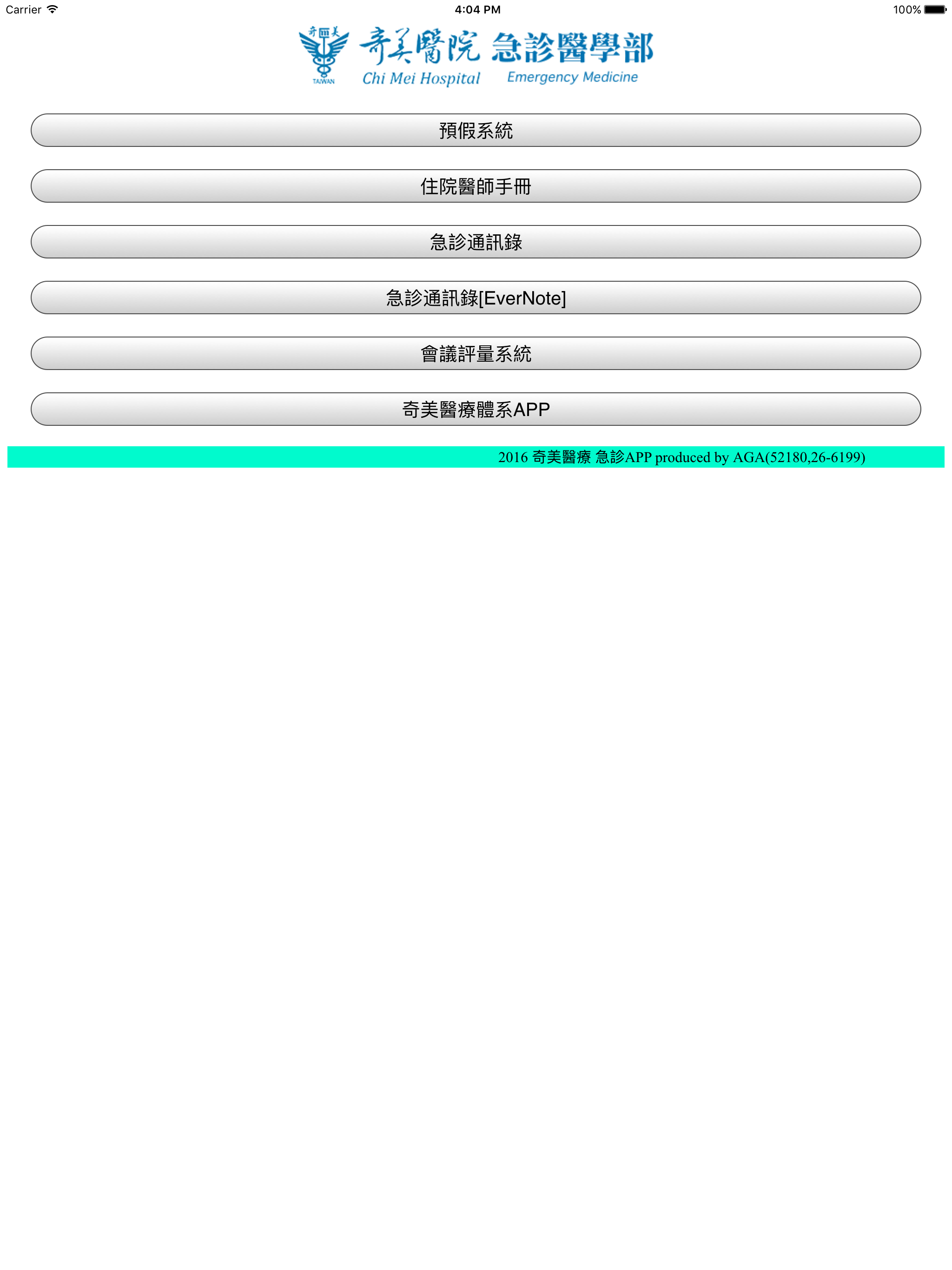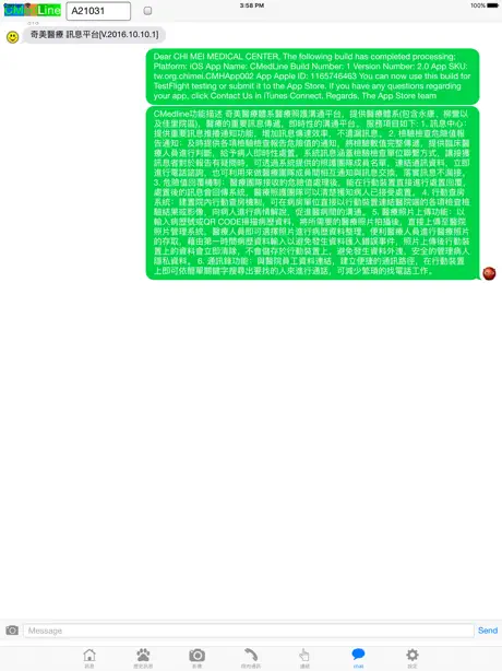 奇美醫療體系醫療照護溝通平台,提供醫療體系(包含永康、柳營以及佳里院區),醫療的重要訊息傳遞,即時性的溝通平台。