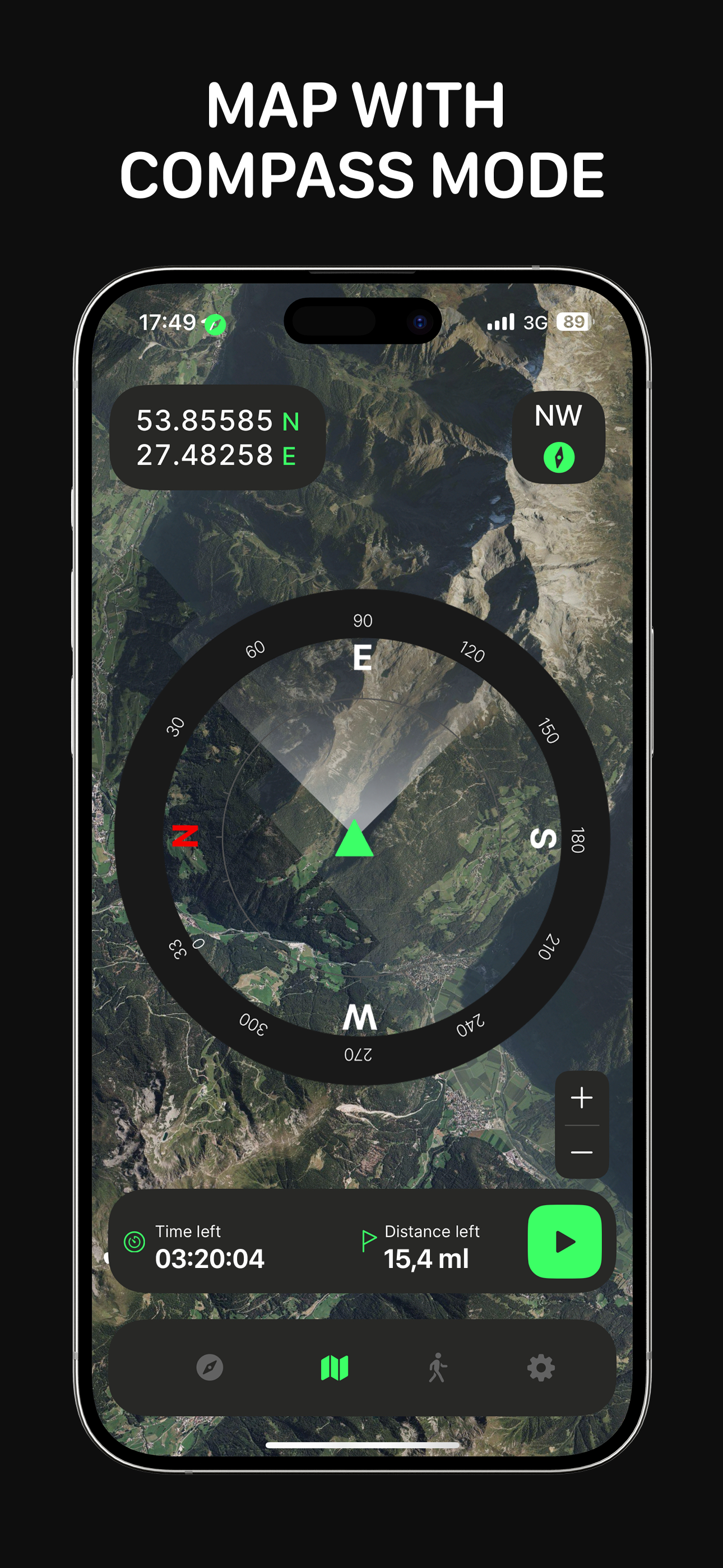 For the best navigation experience, use the map together with the compass. See your current direction directly on the map, helping you orient yourself instantly and make more informed decisions on your journey.