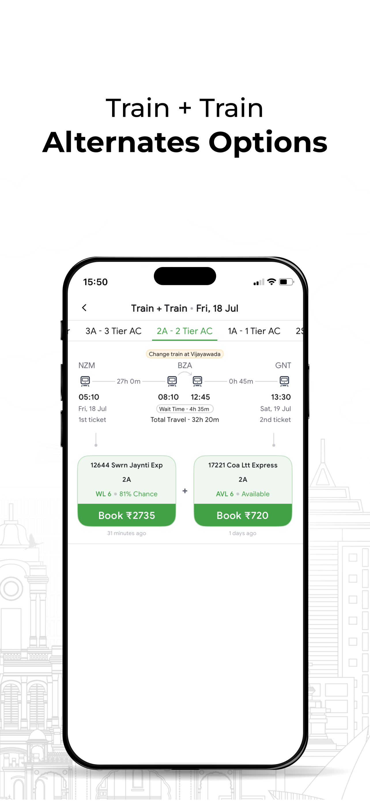 ● Alternates feature that combines train and train, bus and train to give you a confirmed ticket to travel.