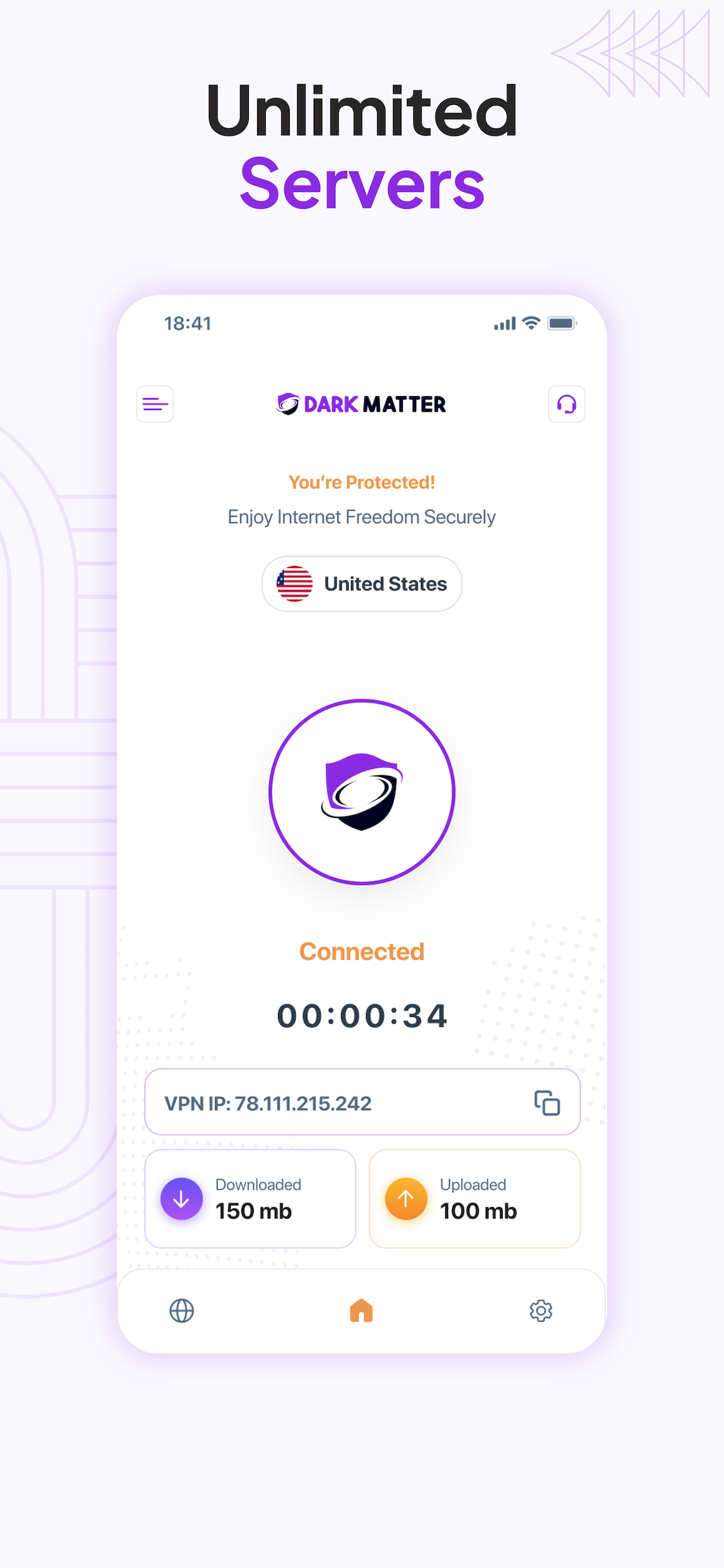 Go online securely with lightning-fast speeds with Dark Matter VPN, connect with one tap and protect your IP address, encrypt your traffic and enjoy complete privacy.