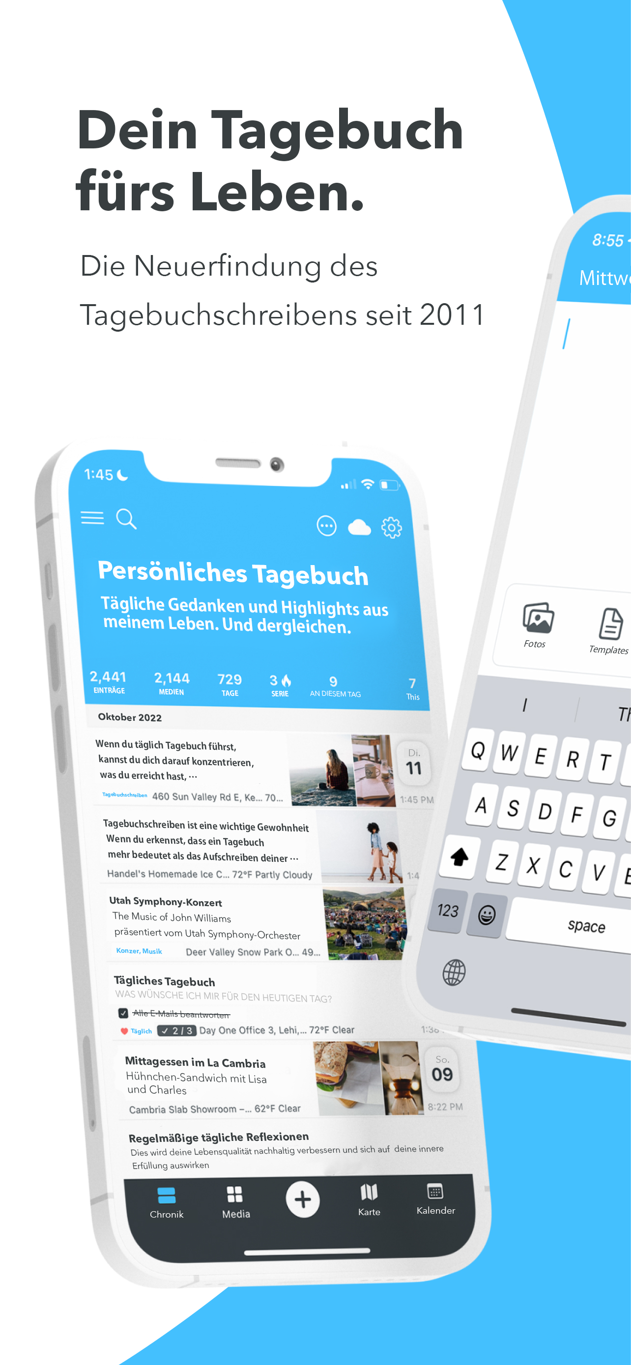 Mit der App kann ich meinen Lebensweg individuell dokumentieren. Mit Fotos, Videos und geschriebenen Einträgen.