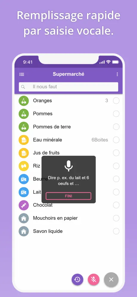 Code couleur avec l’émoticône fruits etc selon les ingrédients. Anciennes listes accessible en un pouce, partage de liste avec ma conjointe. Je trouve l’application tout simplement parfaite.