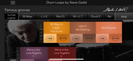 Play along or record your own songs with the best studio drummer in the world! Steve Gadd Loops is one of a kind, the first time the celebrity drummer (James Taylor, Chick Corea, Paul Simon) comes to IOS with 4 bar drum loops for you to copy/paste into your DAW or to play along with! It features full Audiobus and Inter App Audio support. A perfect partner for GB, loops and fills follow GB tempo!. Click "...More" to learn why you should download this App today!