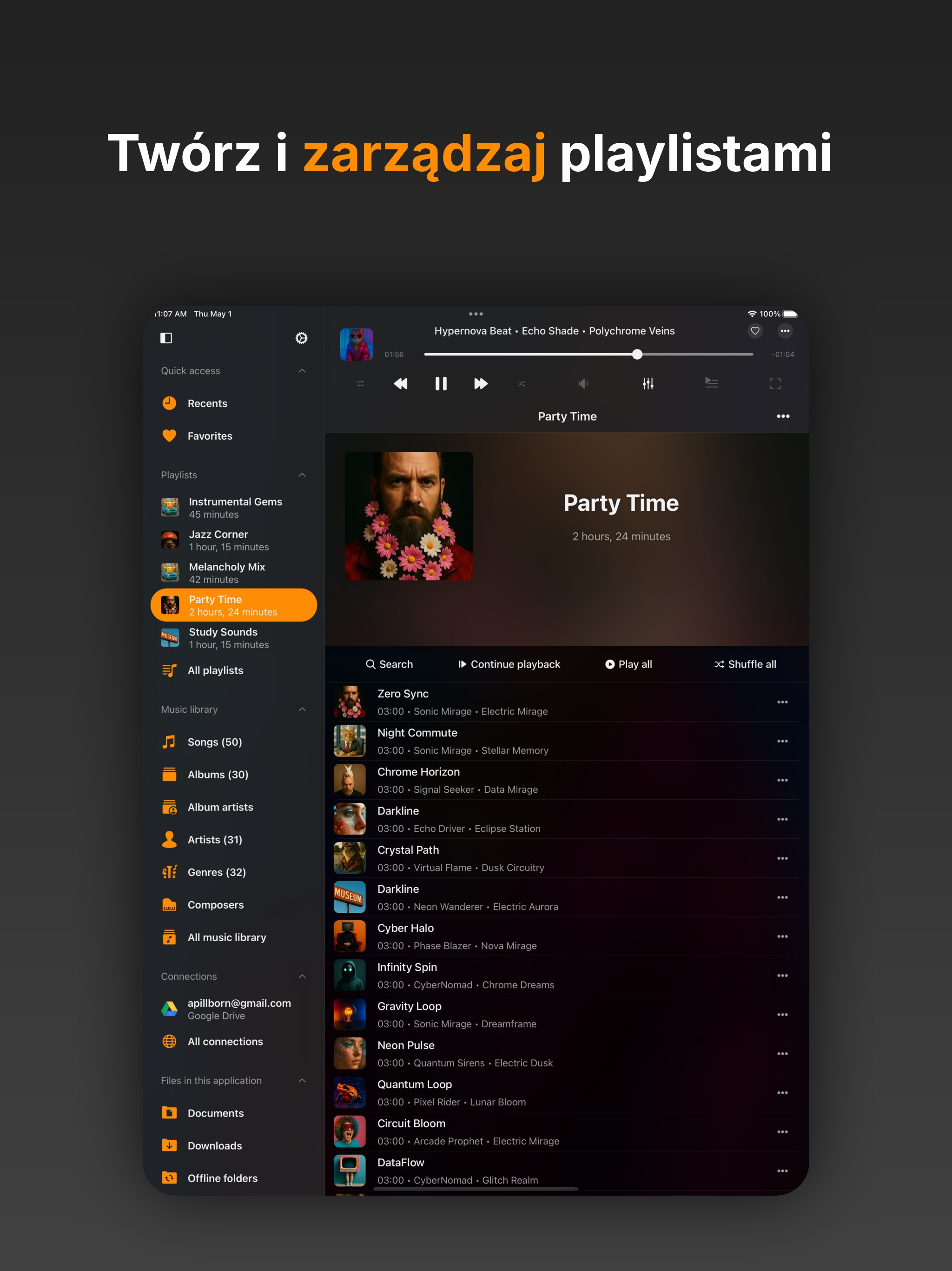 Wrzuciłem audiobooka w częściach i chciałem posortować wg numerów lub tytułów. Nie wiem jakim systemem to sortuje ale nie dało się wg kolejności.. może to dlatego że nie zdążyłem jeszcze zapłacić za wersję premium.. i całe szczęście..