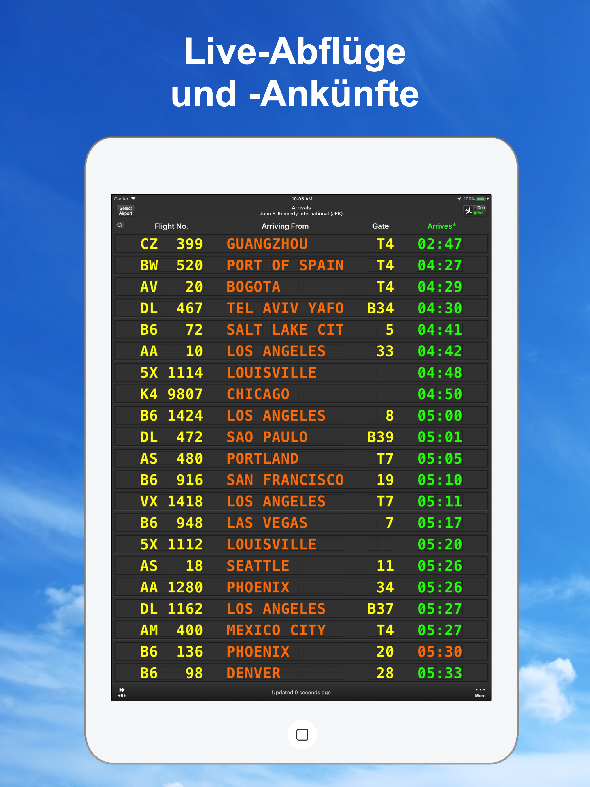 App gives updates on all flights. Easy to use when in a pinch at any airport