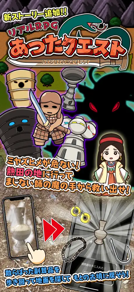 クエストがめっちゃ楽しい¡¡私は家族3人でやったことあるけどその時に充電器を持って行くほど時間かかりました*(x_x)*しかも3人ともこれ倒してこれ見逃してて...無茶苦茶、(もし充電器を持ってってなかったら充電切れてしまっていたな...) :0 また、移動する時に戦わせるのやめてほしい[あつたクエストより]4時間ぐらいやらせられるから「あと2時間ぐらいしたら用事がある」って人は厳しいと思います。冒険が好きって人もこれは長すぎるかなと思いました...なぜクエストが2つしかないんですか?7〜10こぐらいほしい...それであつたクエストは行き帰り合わせて3〜5時間ぐらいかかりました。なぜなら電車に乗って「金山駅」まで行かないといけなかったからです...。私の家から志段味古墳ミュージアムは近いけど、その「金山駅」までは15〜20分ぐらいかかる... D: あつたクエストはクエストの時間は1〜2時間ぐらいみたい... あっ、そうそうこのレビュー見た人で「これやりたい!」って人は必ずしだみクエストからやってくださいね。てことでこれ...楽しいから星4にしておこう。...キャラ死んだりするから「あ〜〜¡¡」ってなるかもしれない... ;-; 歩き疲れるし...{4月11日20時50分}