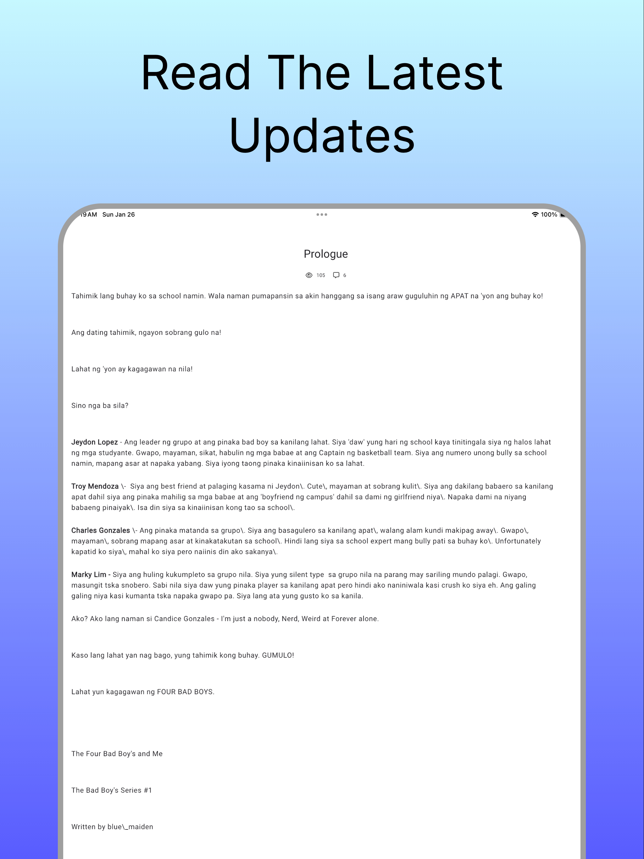 Hello! I like this app since some of my fav stories that were removed or under paid program in wp are here for free. The problem is the app crashes everytime huhu. Nakaka-frustrate lang every time na nagbabasa ako and then bigla-biglang nababalik sa home page. I don’t know if ako lang ba nakaka-experience or phone ko ba ang problem but ‘yun huhu thank you