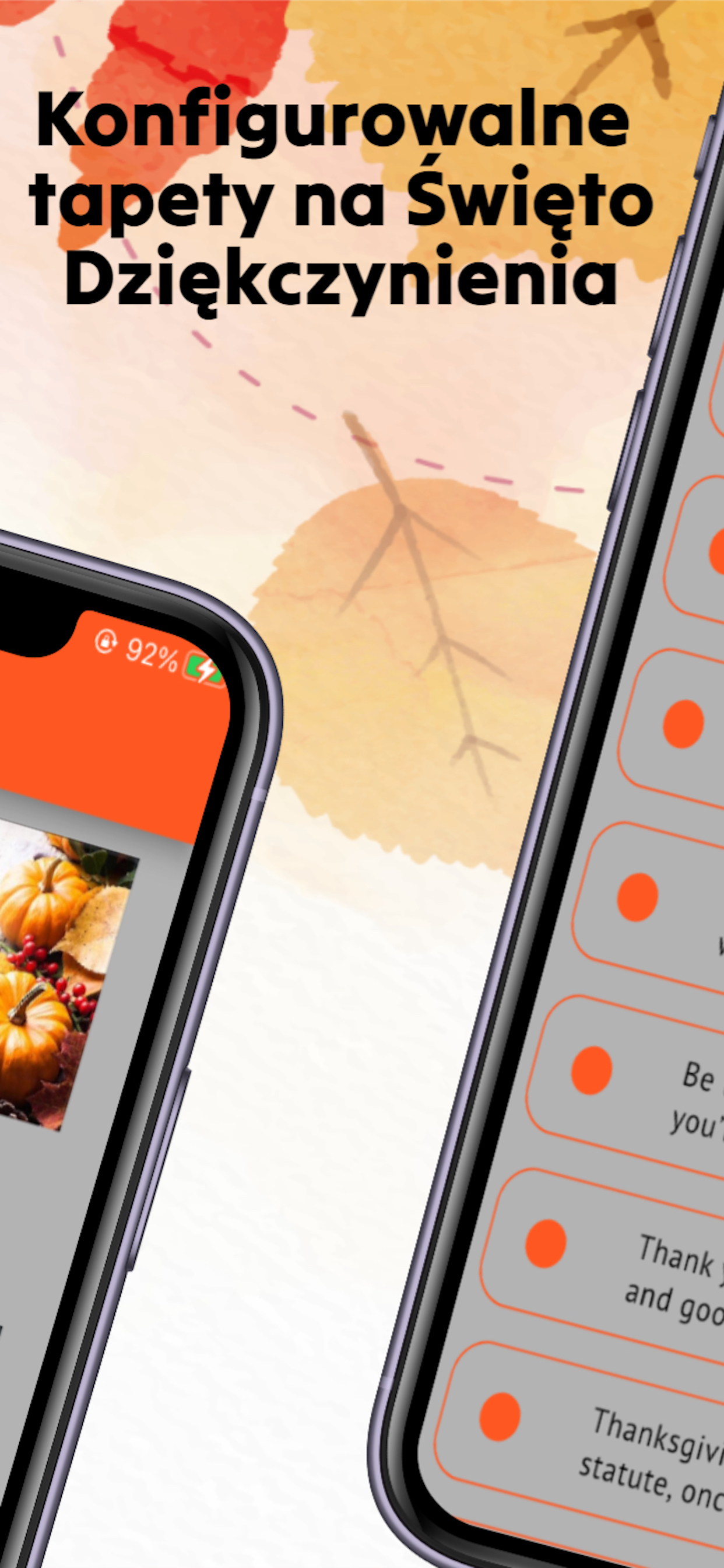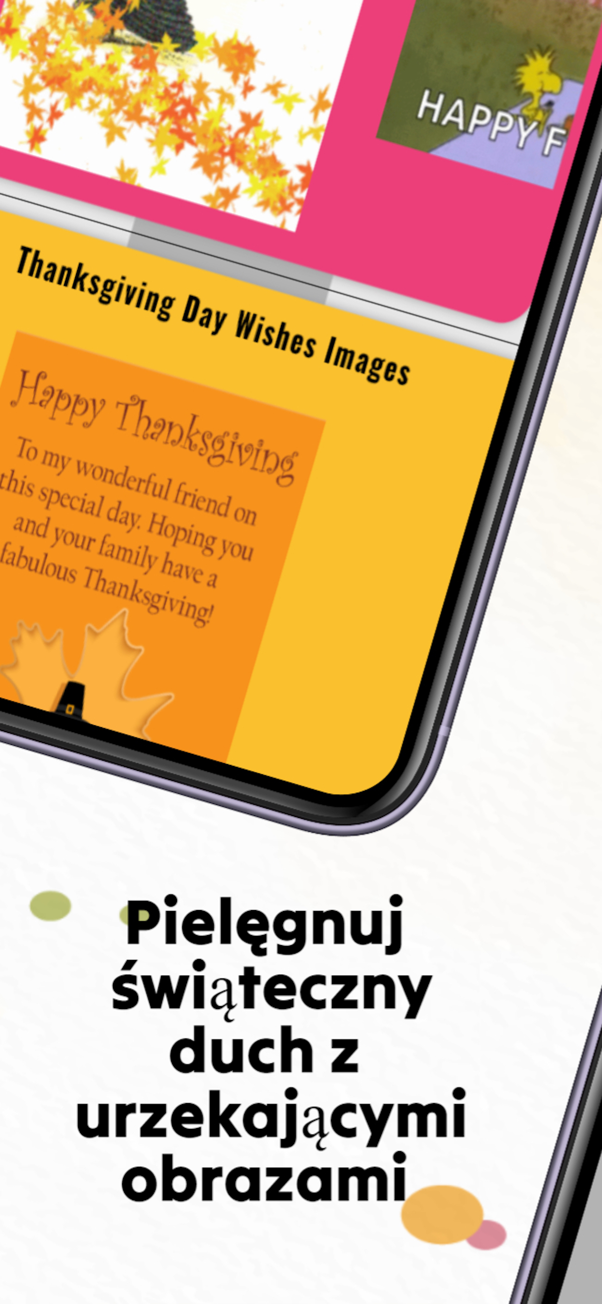 Aby jeszcze bardziej zwiększyć wakacyjną atmosferę, aplikacja oferuje szeroki wybór tapet i tapet w Święto Dziękczynienia. Niezależnie od tego, czy chcesz ozdobić swoje urządzenie żywymi jesiennymi liśćmi, czy uroczymi scenami zbiorów, aplikacja zapewnia wiele opcji stworzenia świątecznej atmosfery.