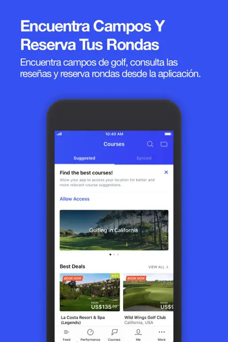 - Red social de golf – Conéctate con otros golfistas, comparte puntuaciones, publica fotos de campos e interactúa con la comunidad global de golf.