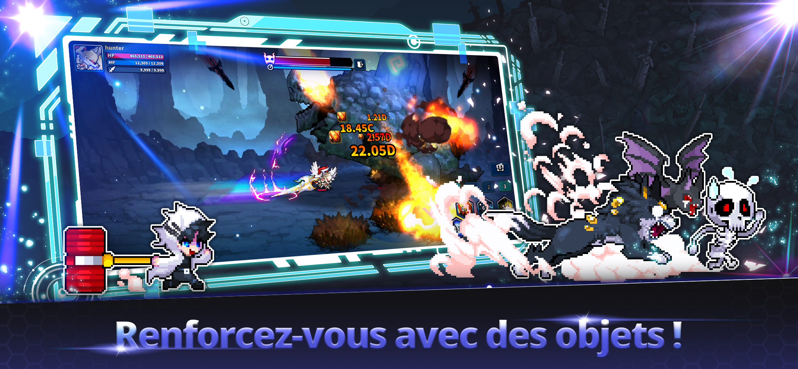 - temps de démarrage trop long pour un pixel game - Il faut regarder des pubs obligatoirement pour progresser et debloquer des éléments de jeu - Système de jeu copié collé d’autres jeux plus populaires Fun 2/20