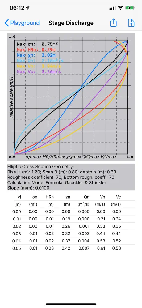 One of the main output of iDrawlix® Mobile is the Stage-Discharge curve of the current Cross Section.