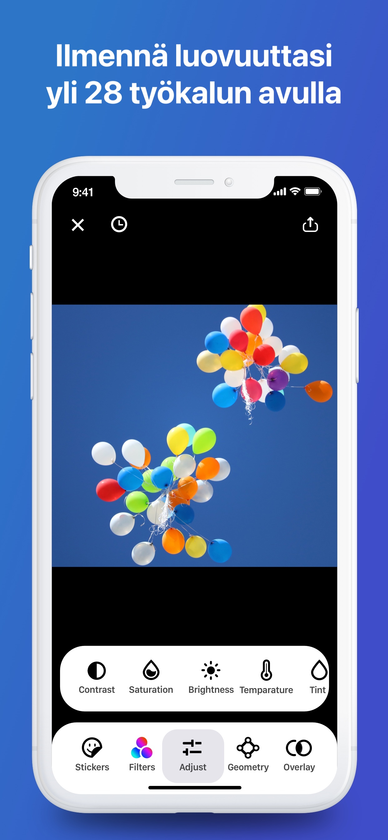 • 28 upeaa editointityökalua: käytä suodattimia ja efektejä muokataksesi kuvistasi täydellisiä;