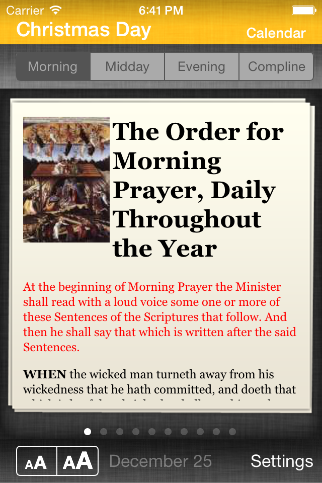 Despite my 3 stars, bottom line, this is the very best 1662 app you will find. Despite its flaws, it makes praying the daily office much more streamlined than with using physical books and bible texts. I have been using this app for about 2 years now. For what it is designed to do, it is amazing. However, occassionally the wrong readings populate. For example, over the past three months it has mistakenly used readings from previous weeks, multiple times. Also, occasionally it will not have the correct readings or collects for holy days. The only interface issue I would like to see improved is when you are scrolling down a page, occasionally you will swipe a millimeter or two to the right or left, as though you are about to sweep to the next portion of the daily office. But if you do so by mistake (which is quite easy) it will reset the page to the top, which is slightly inconvenient, as you will have to scroll down to find your place again. If just the readings and collects issue is fixed, I will change this to a five star review.