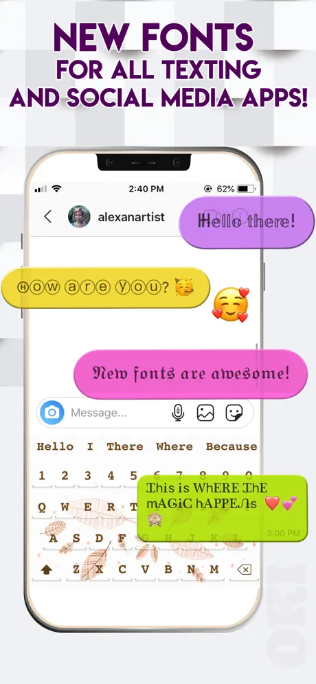 This app does not work as stated. It does not have 100 plus themes nor does it have a good selection of fonts. The keyboard sounds also do not work. Don’t waste your money. I tried getting a refund from Apple and they denied it.