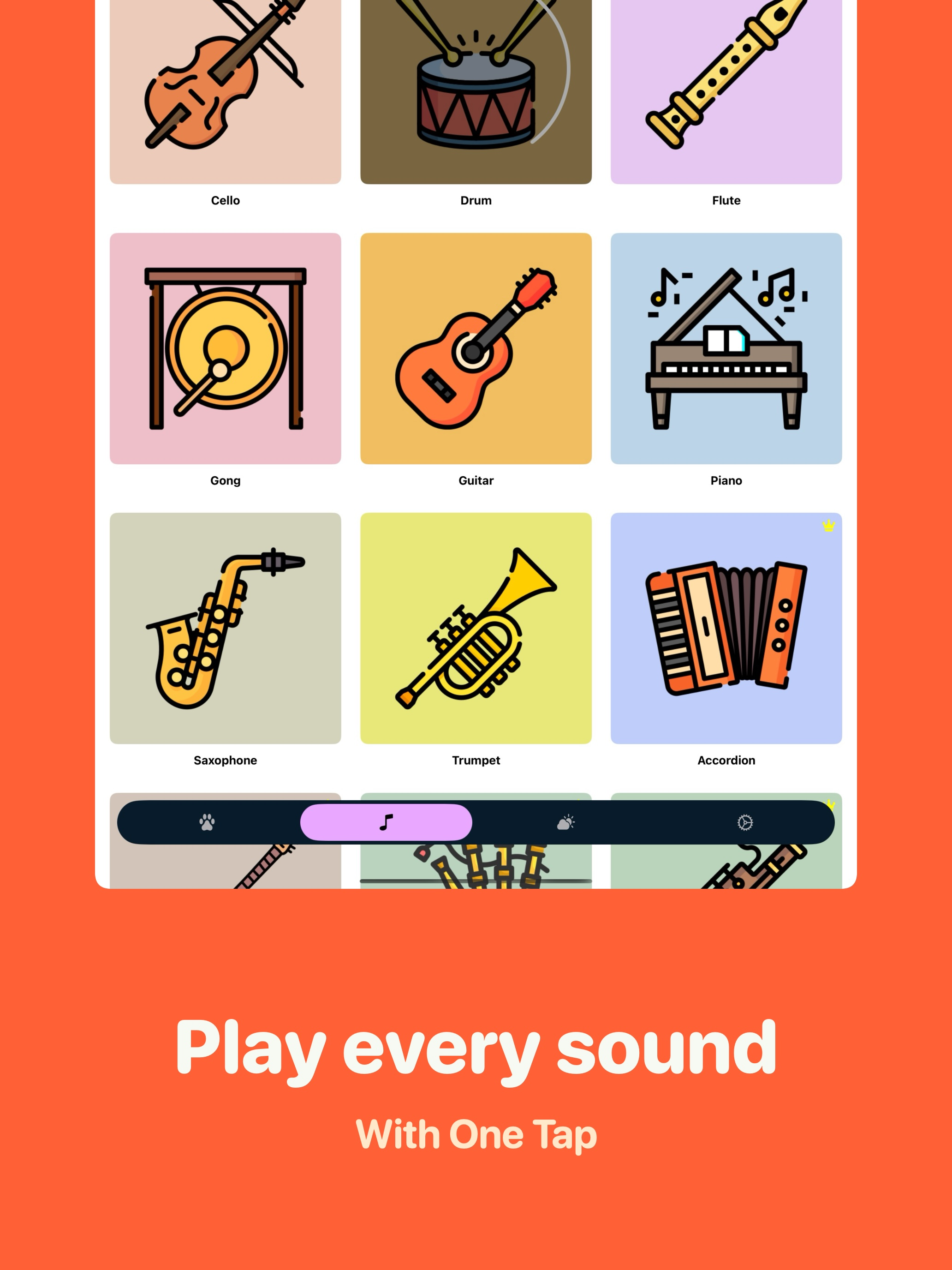 Tasarımlar tam çocuklara yönelik. İnanılmaz tatlı ve sezgisel. Butonlara tıklayarak o hayvanın veya enstrümanın sesini dinletebiliyorsunuz