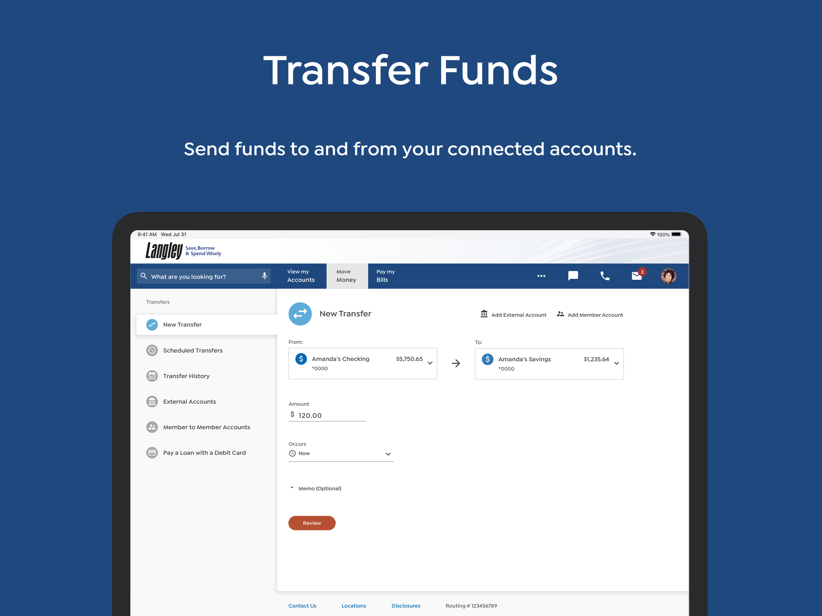 • Transfers - Transfer money between your accounts