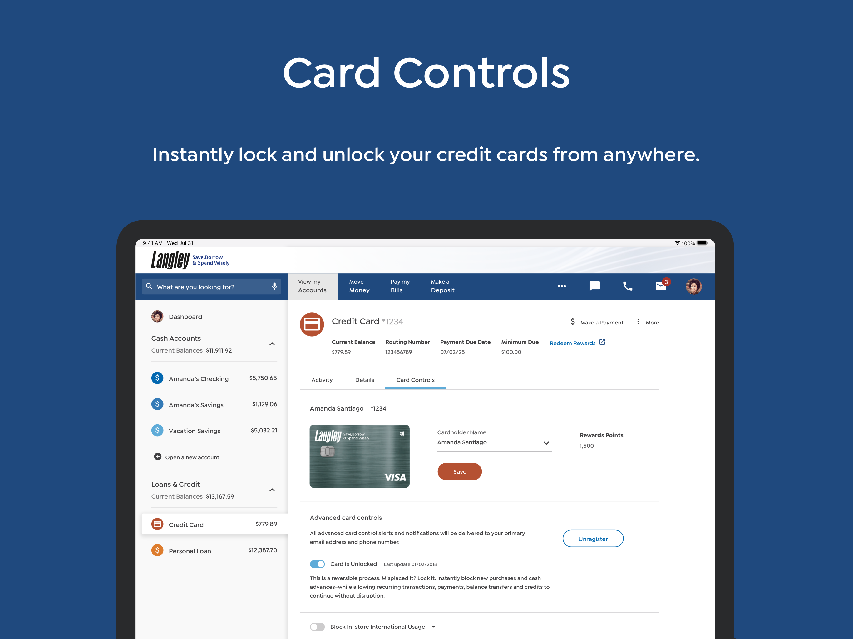 • Credit Cards - Manage your Langley Visa credit and debit cards