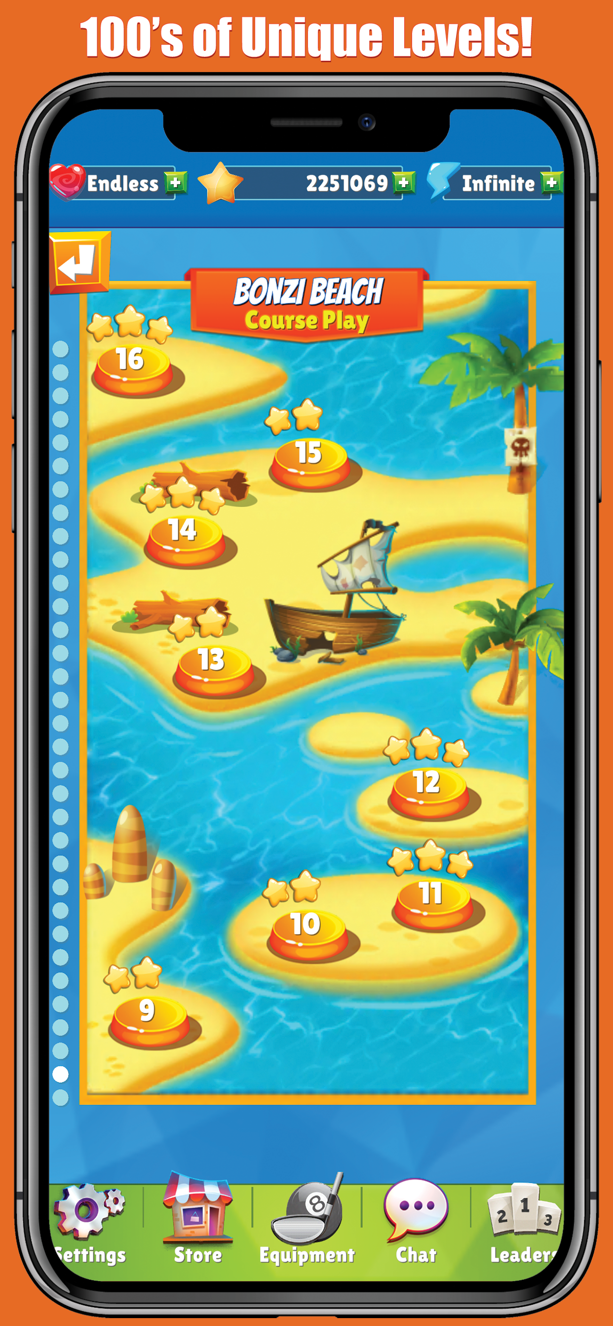 With 3 Hole Matchups, Mini Golf Stars 2 will test your skills to see if you have what it takes. Weekly leaderboards will determine the champ and reward them with trophies and prizes!