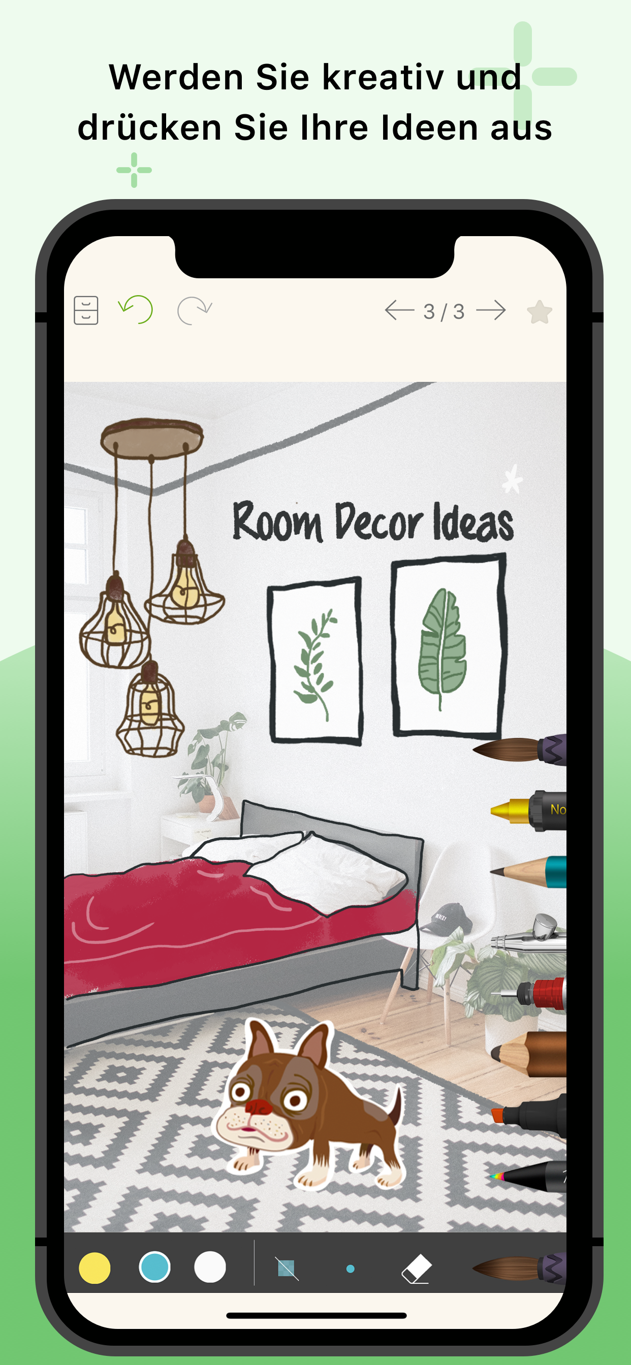 - Zeichnen, konturieren, skizzieren oder ausmalen mit einer Vielzahl von Pinseln für Designer und Kreative*