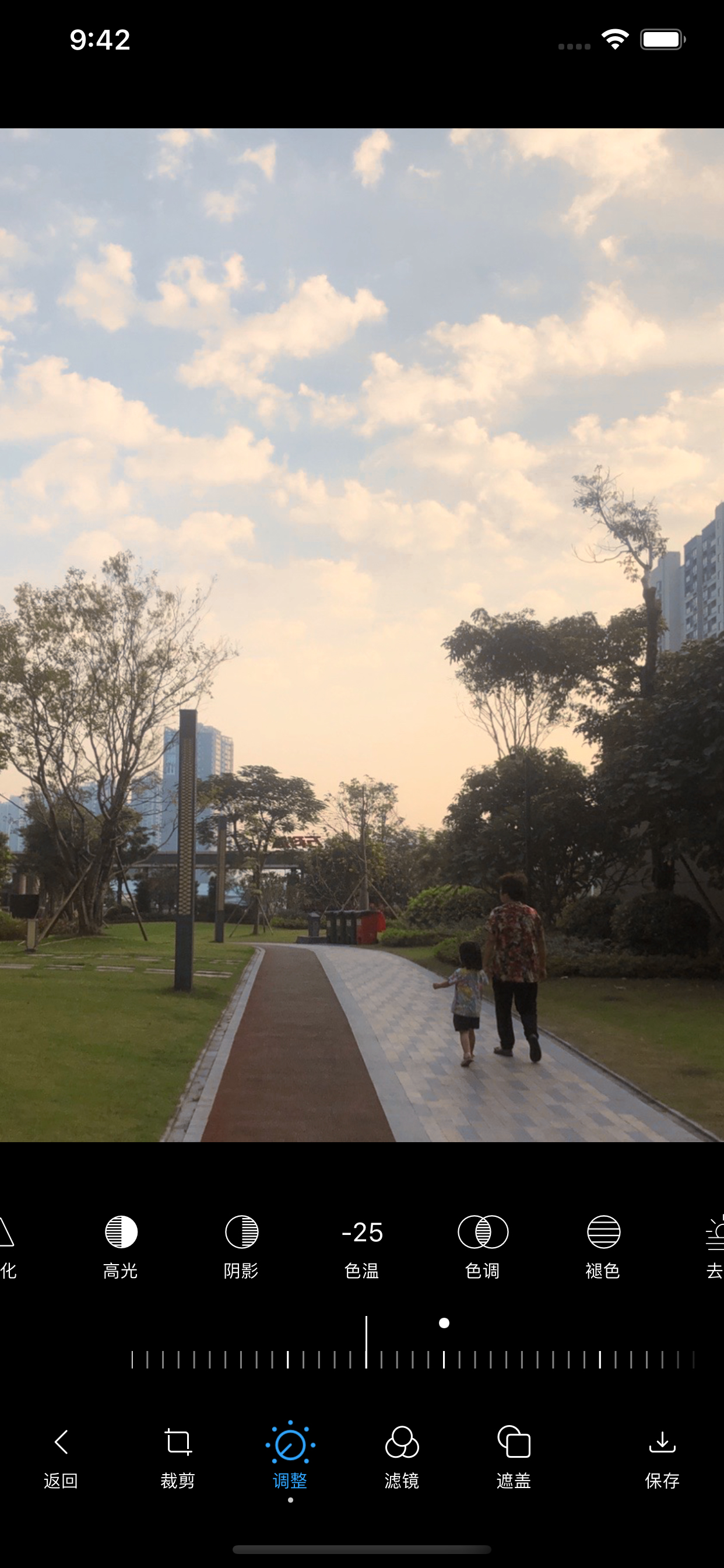 - 图片调整：曝光度，对比度，饱和度，色调，色温等 13 种调整工具。