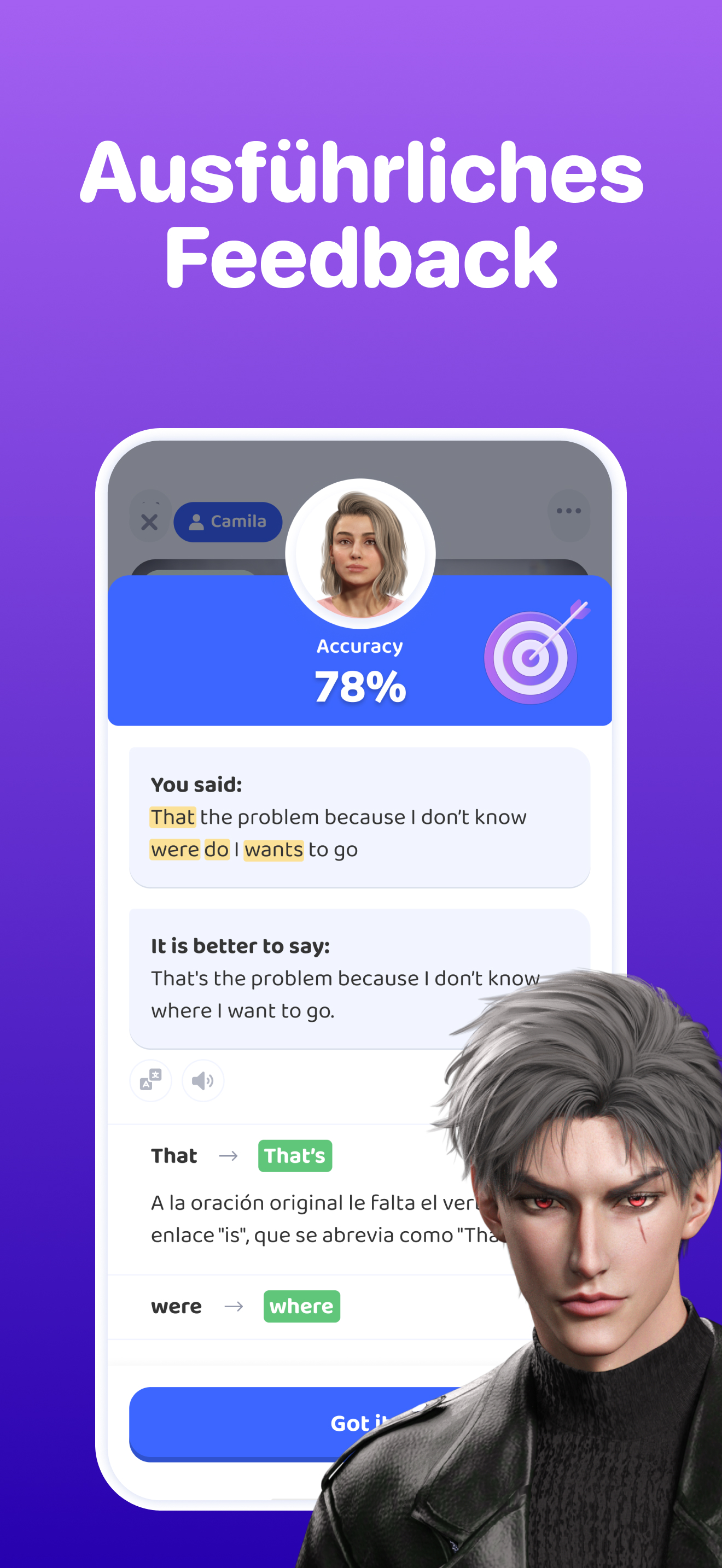 Lokalisierte Avatare – Wähle Coaches aus verschiedenen Regionen passend zu deinen Akzent- oder Kulturzielen.