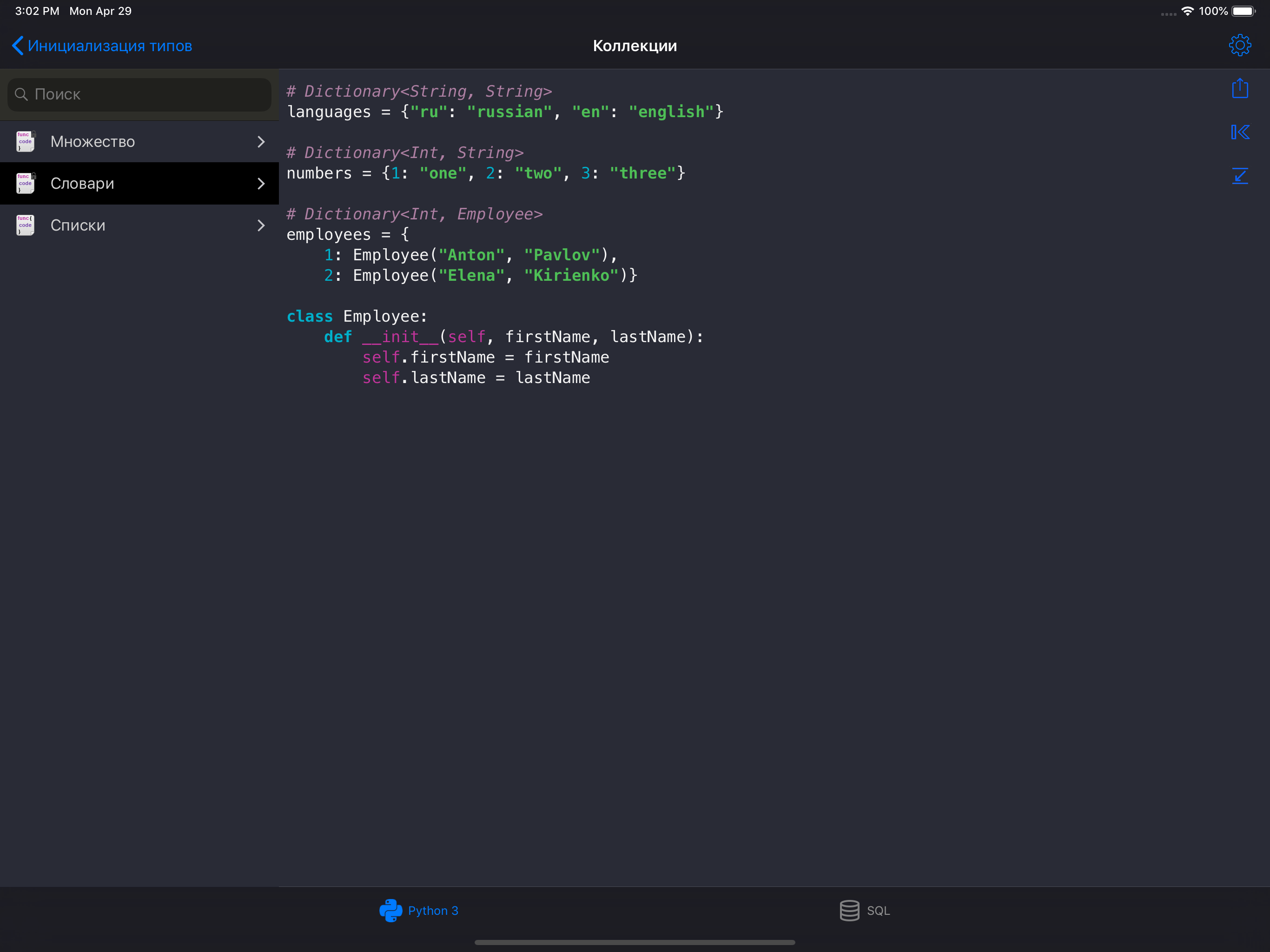 Python & SQL has several in-app purchases/subscriptions, the average in-app price is 129.00 ₽.